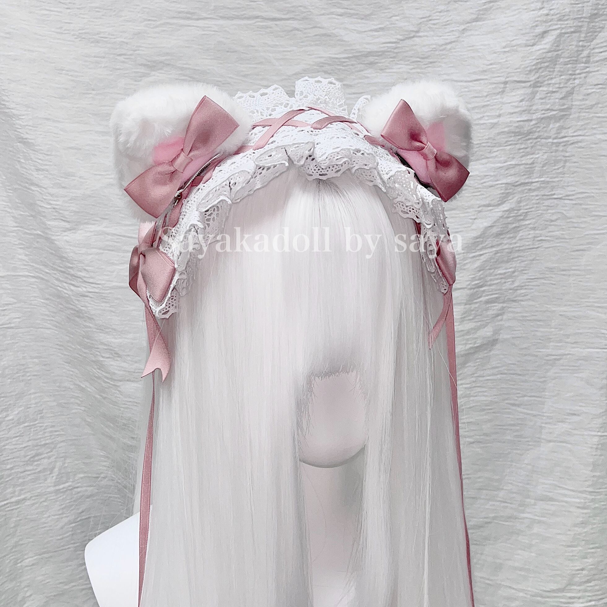 ♡ Milky cat ねこみみ フリルレースリボンヘッドドレス pink ♡