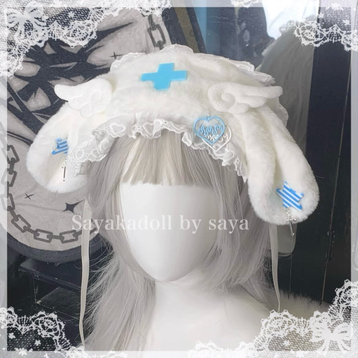 ♡ Melty heart 天使の羽 十字架うさみみフリルヘッドドレス black ♡