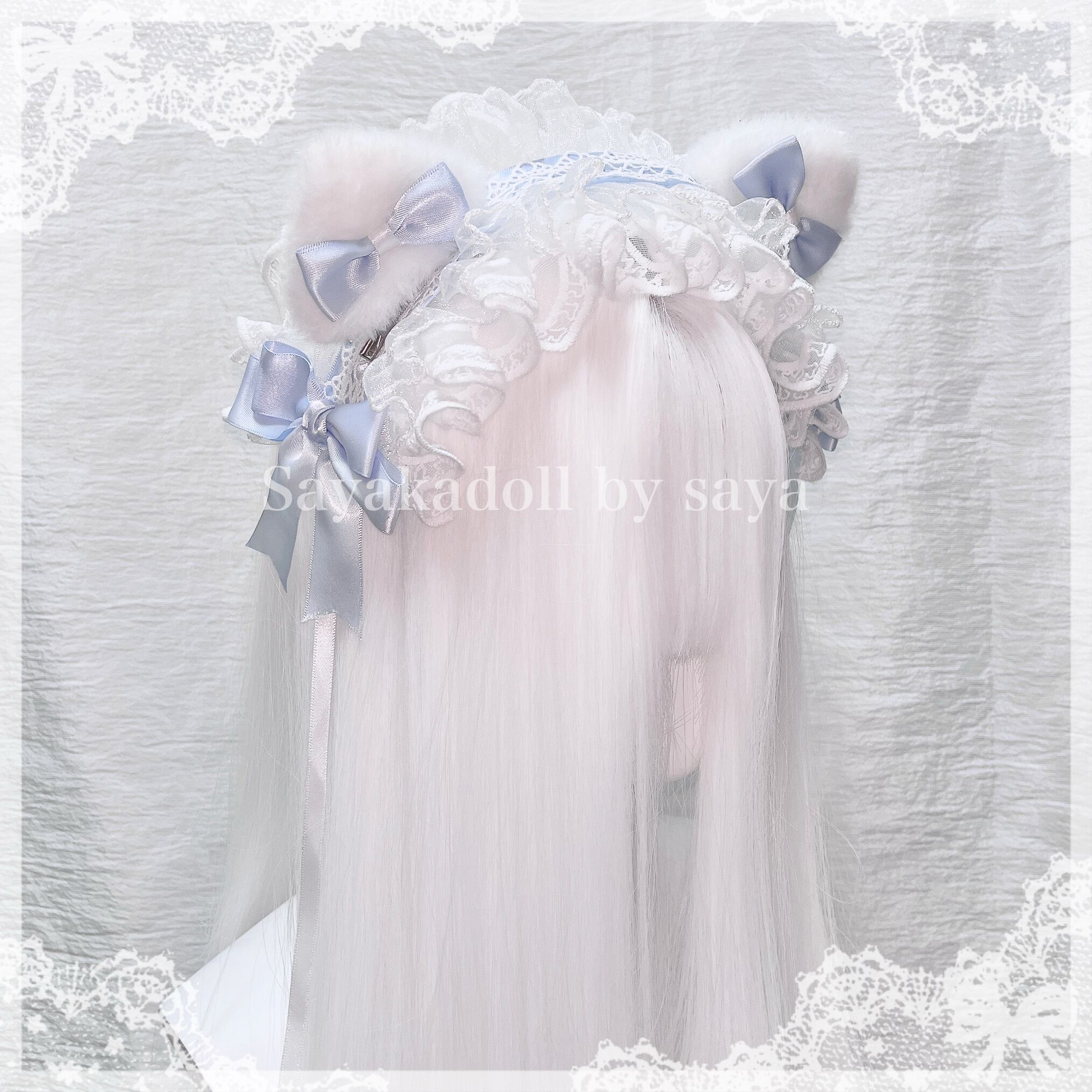 ♡ ねこみみ フリルレースリボンヘッドドレス 3way light purple ♡