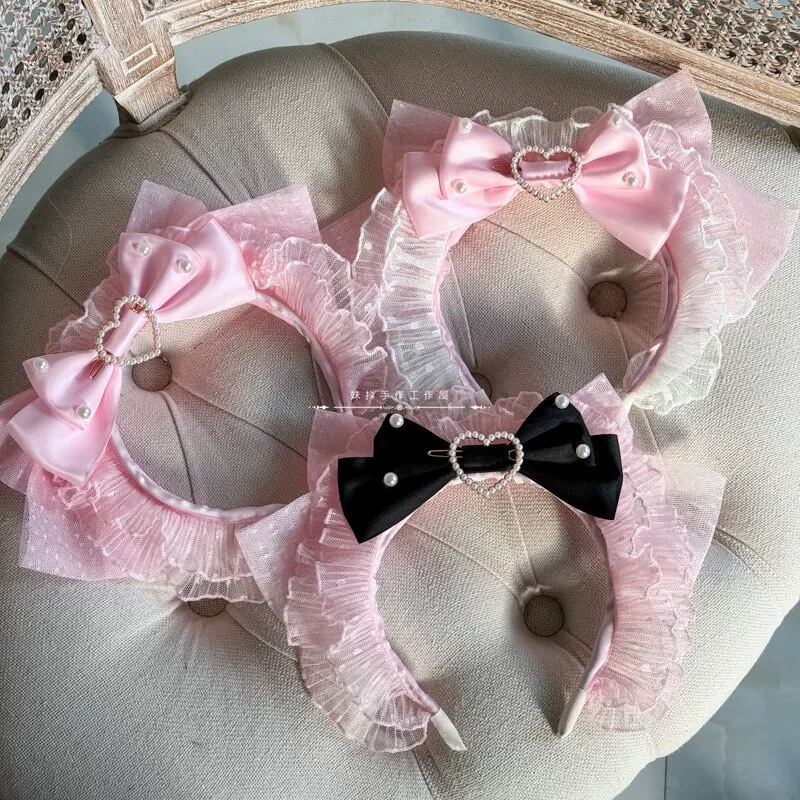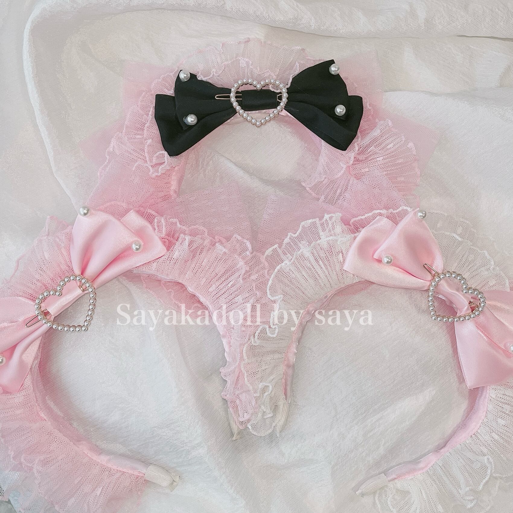 ♡ Princess pearl heart フリルリボンカチューシャ pink×pink ♡