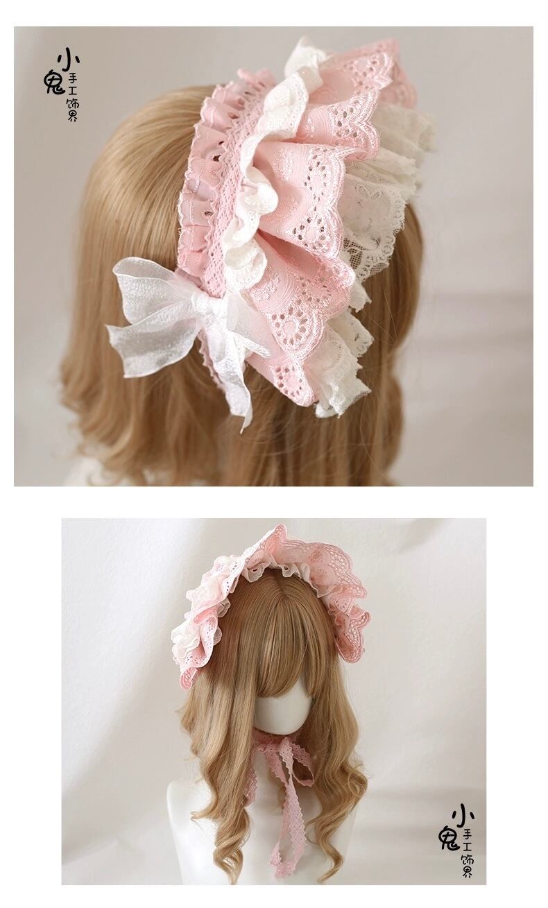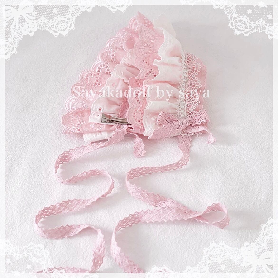 ♡ Lolita ボンネット風 フリルリボンヘッドドレス pink B ‪♡