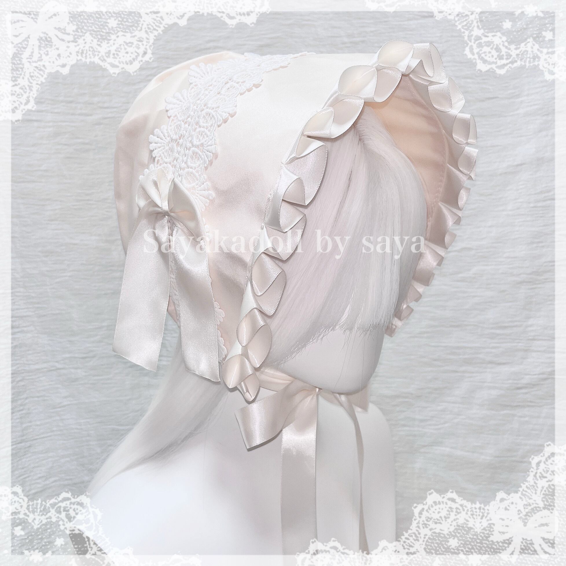 量産型・地雷系やロリータ・ゴシック・サブカル・Y2Kファッションにぴったりなフリルやリボンが可愛いサテンボンネット帽子になります♡
