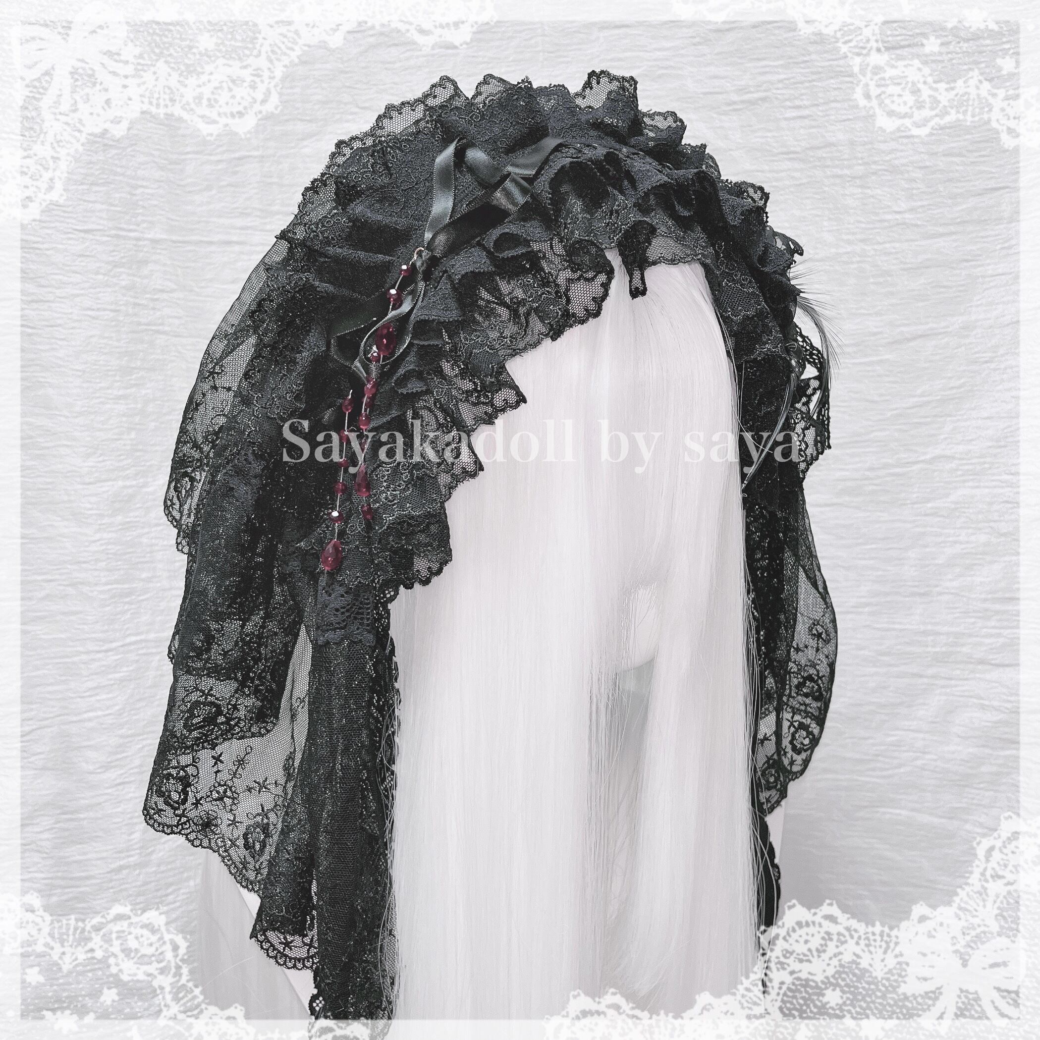 量産型・地雷系やロリータ・ゴシック・Y2K・サブカルファッションにぴったりなボリュームたっぷりヴェール付きヘッドドレスになります♡