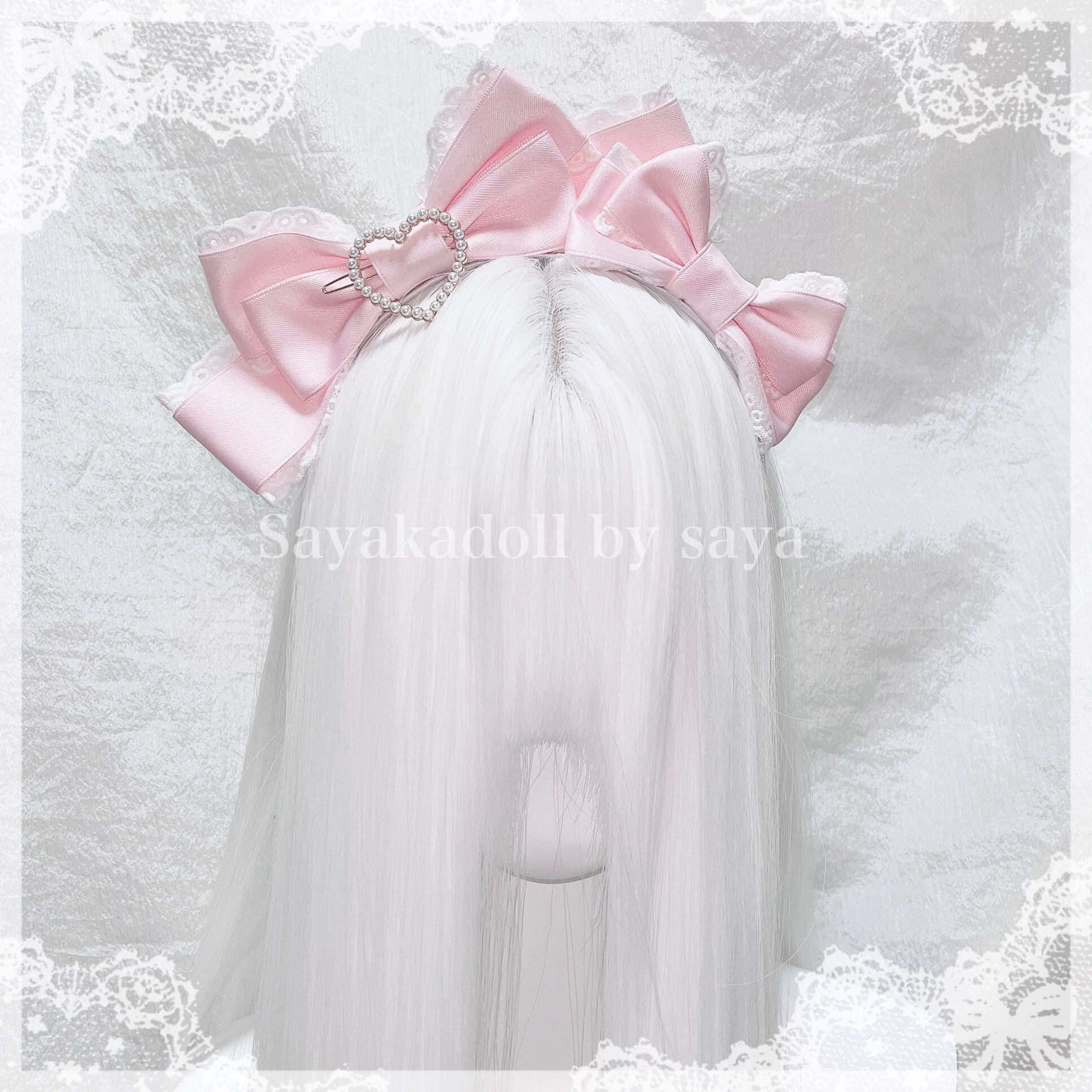 ♡ ダブルリボン パールハート フリルカチューシャ light blue ♡