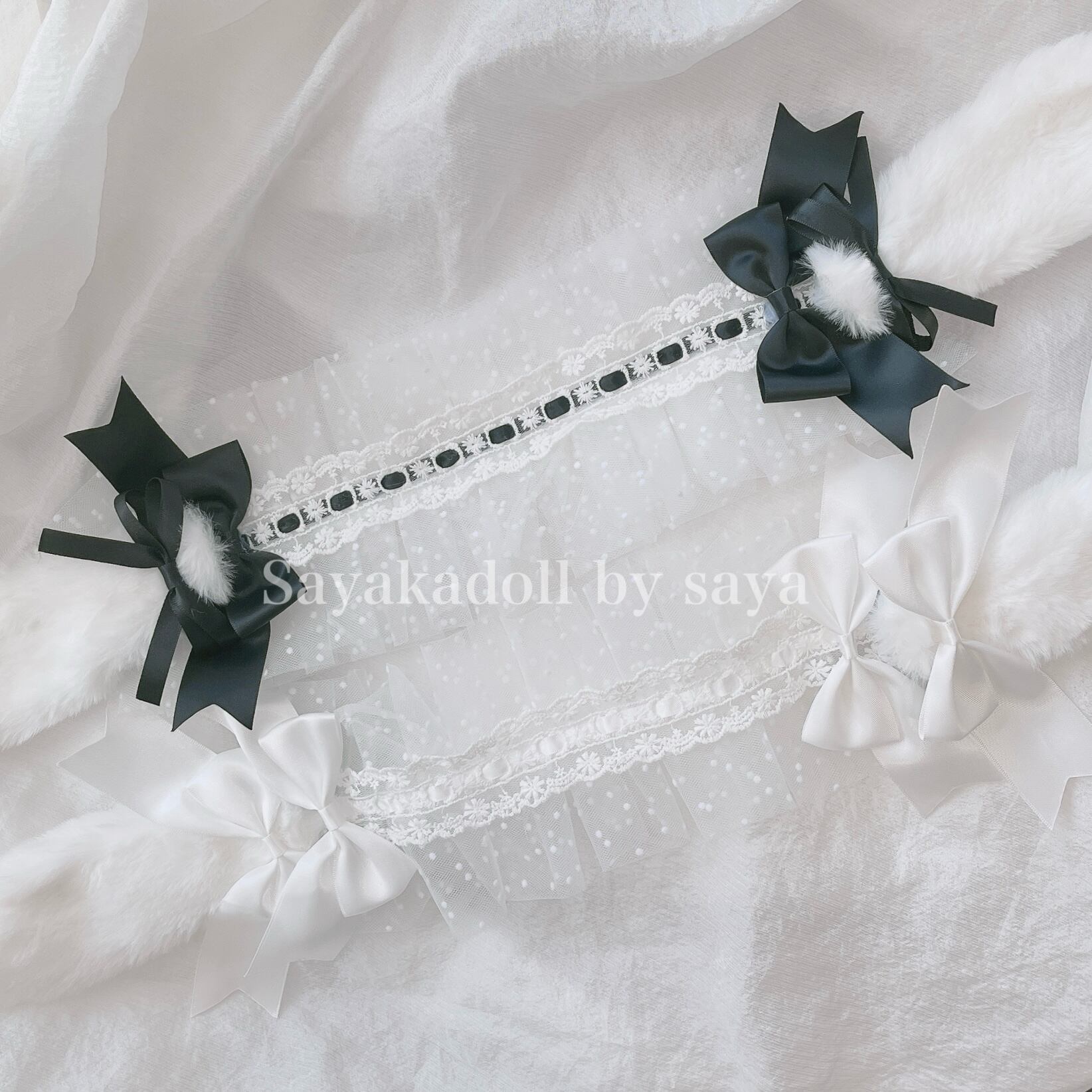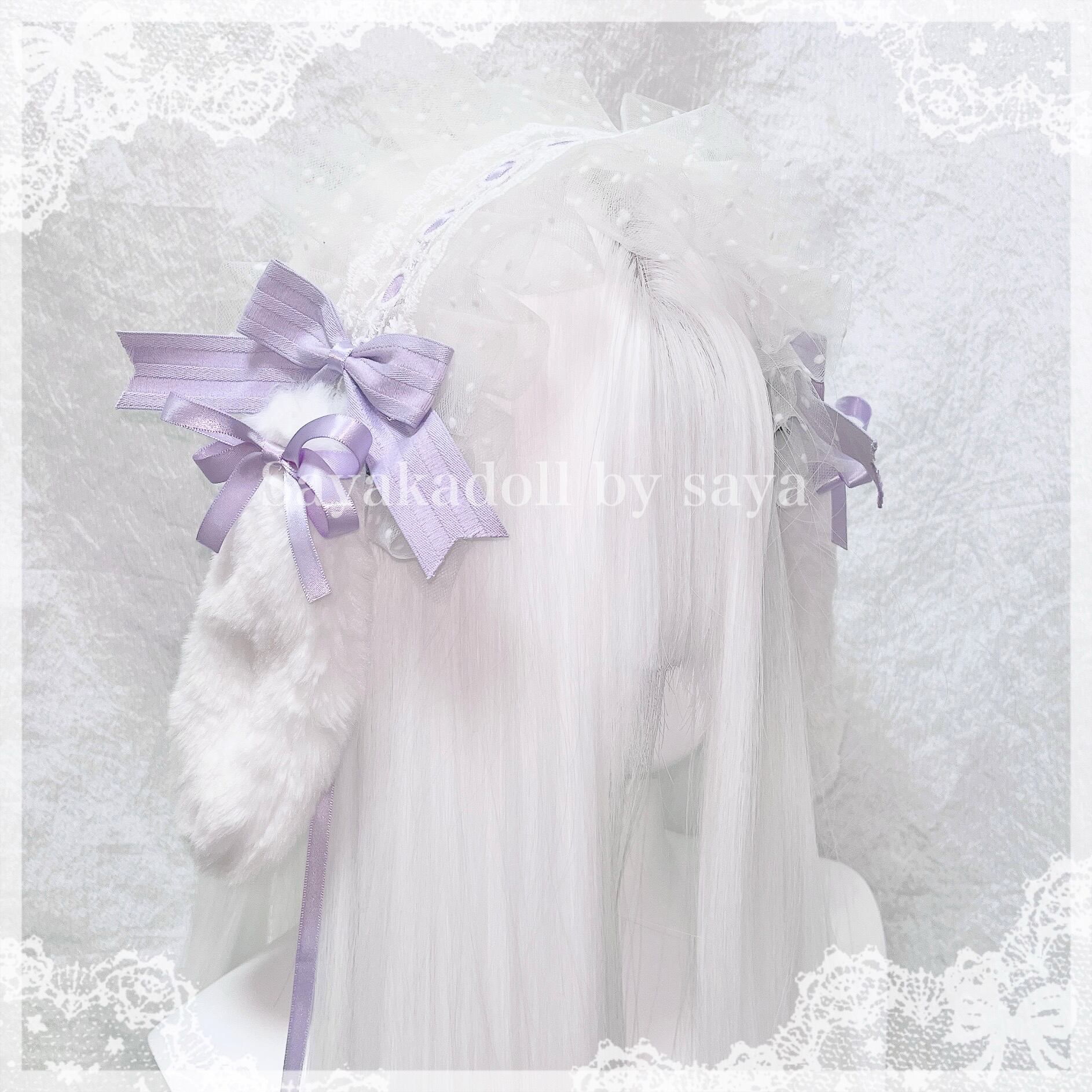 ♡ Lolita うさみみ付き フリルレースダブルリボンヘッドドレス white ♡