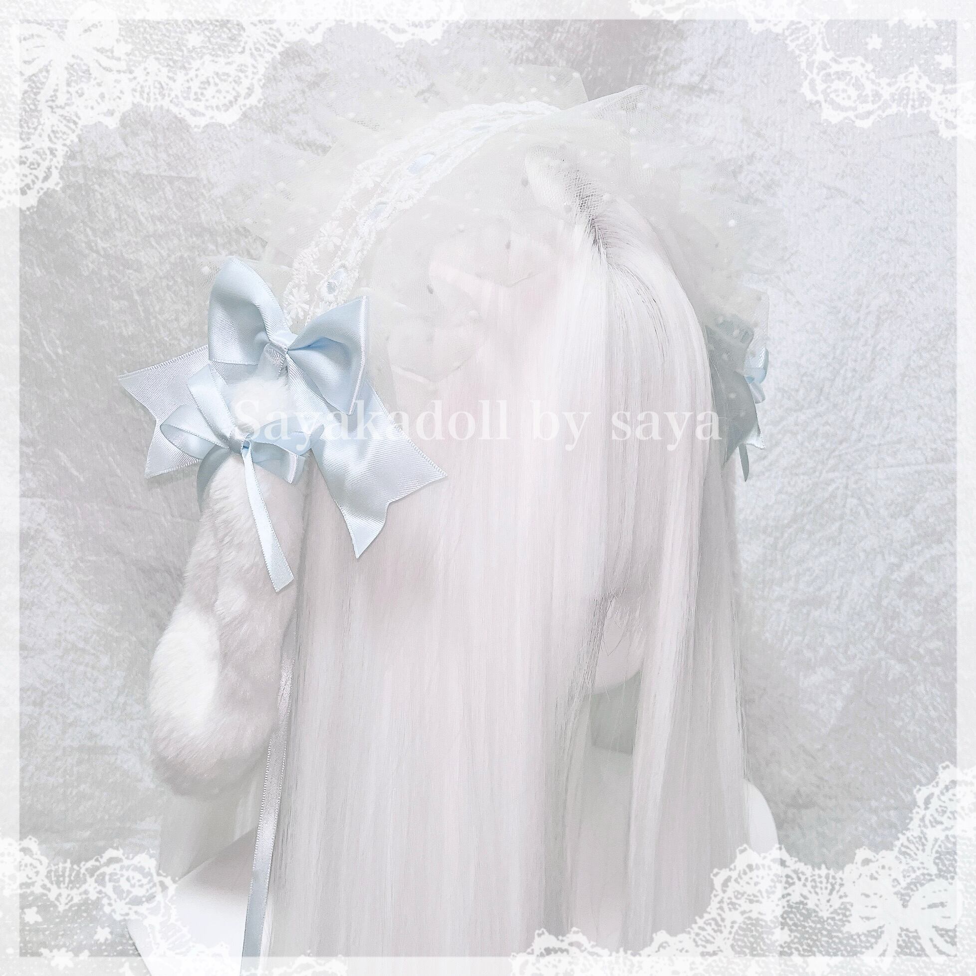 ♡ Lolita うさみみ付き フリルレースダブルリボンヘッドドレス baby blue ♡