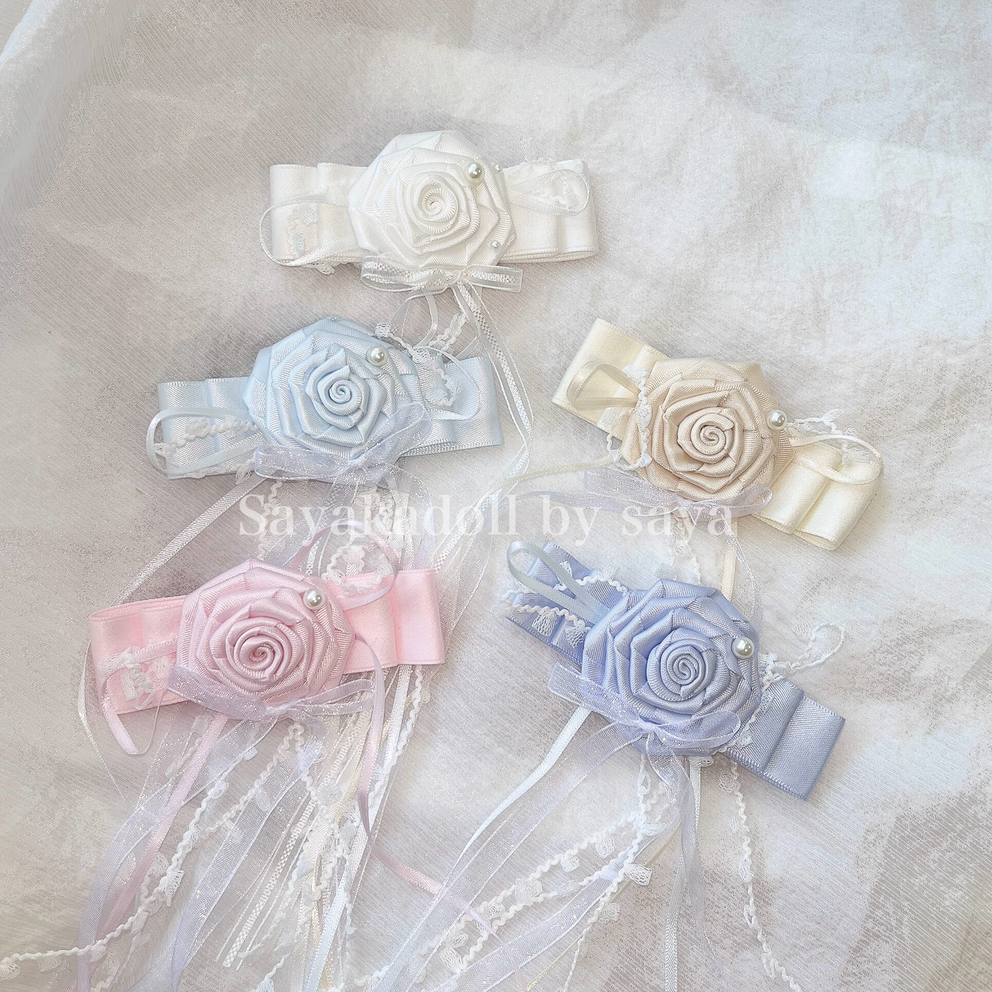 ♡【2個set】Ribbon rose サテンリボンヘアクリップ white ♡