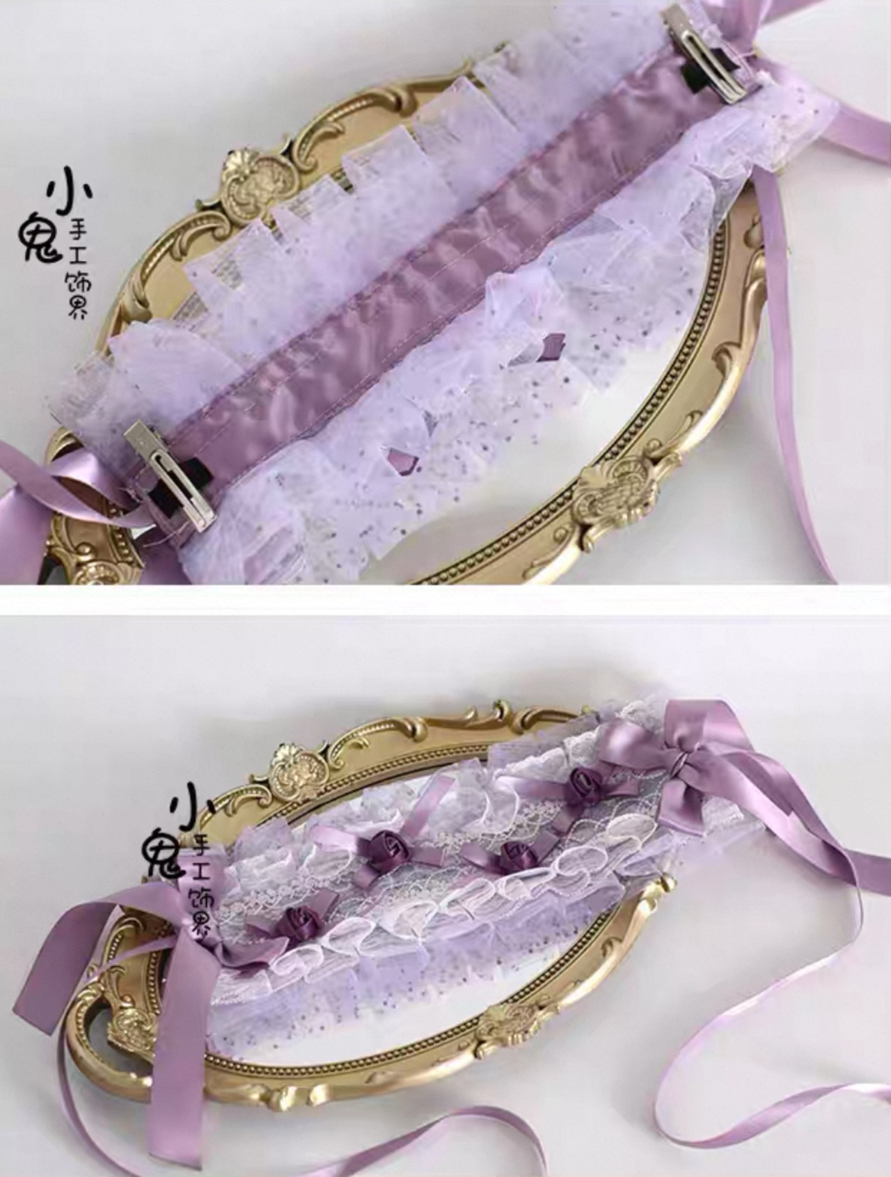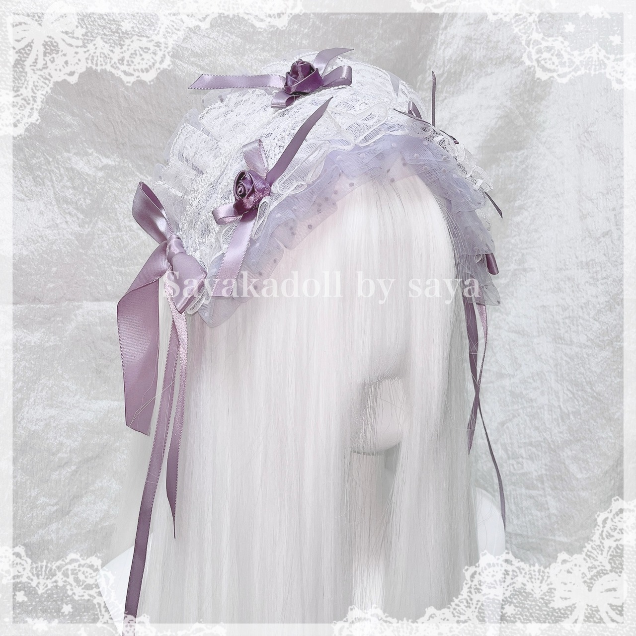 ♡ ドット柄 薔薇付き フリルレースリボンヘッドドレス purple ♡
