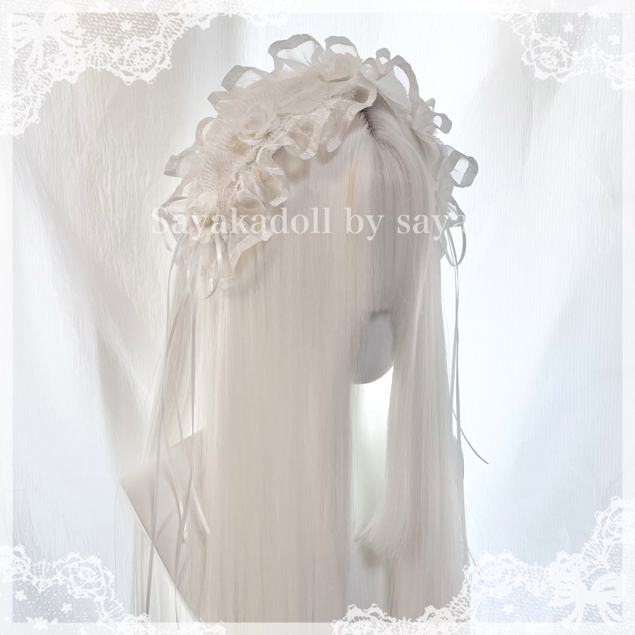 ♡ MAID 薔薇モチーフ オーガンジーフリルヘッドドレス white ♡