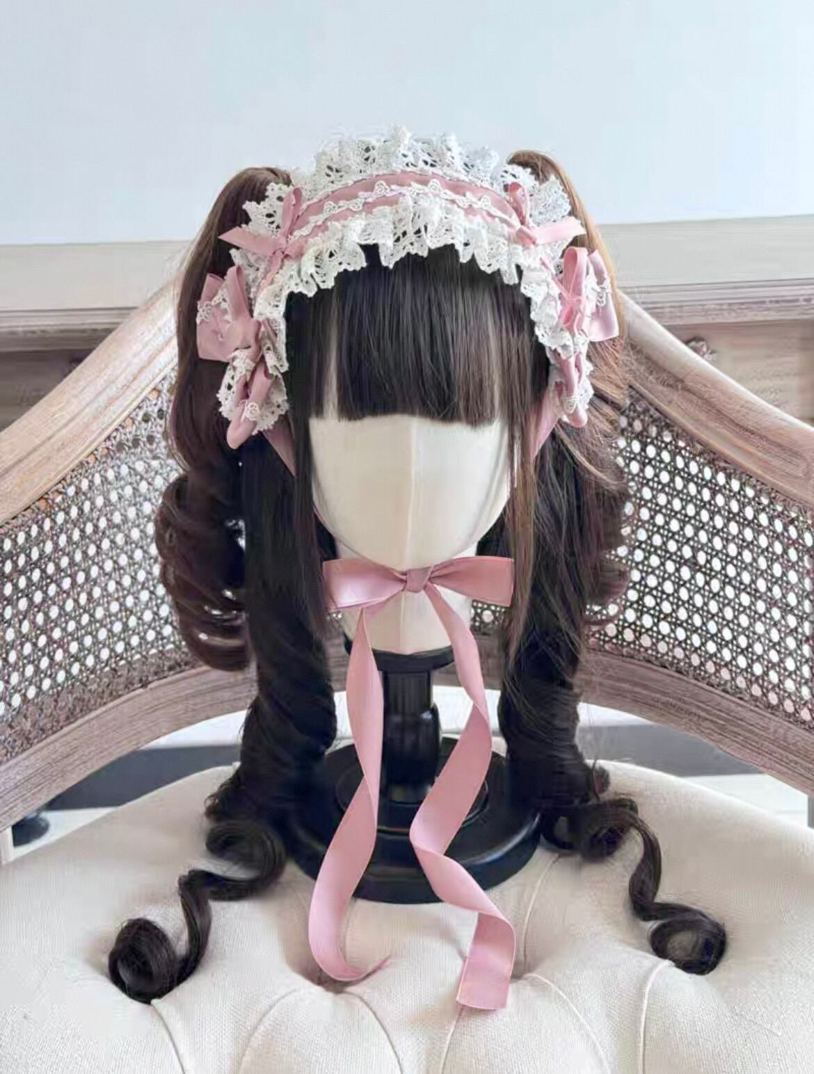 ♡ MAID マットサテンリボン フリルレースヘッドドレス smoky pink ♡