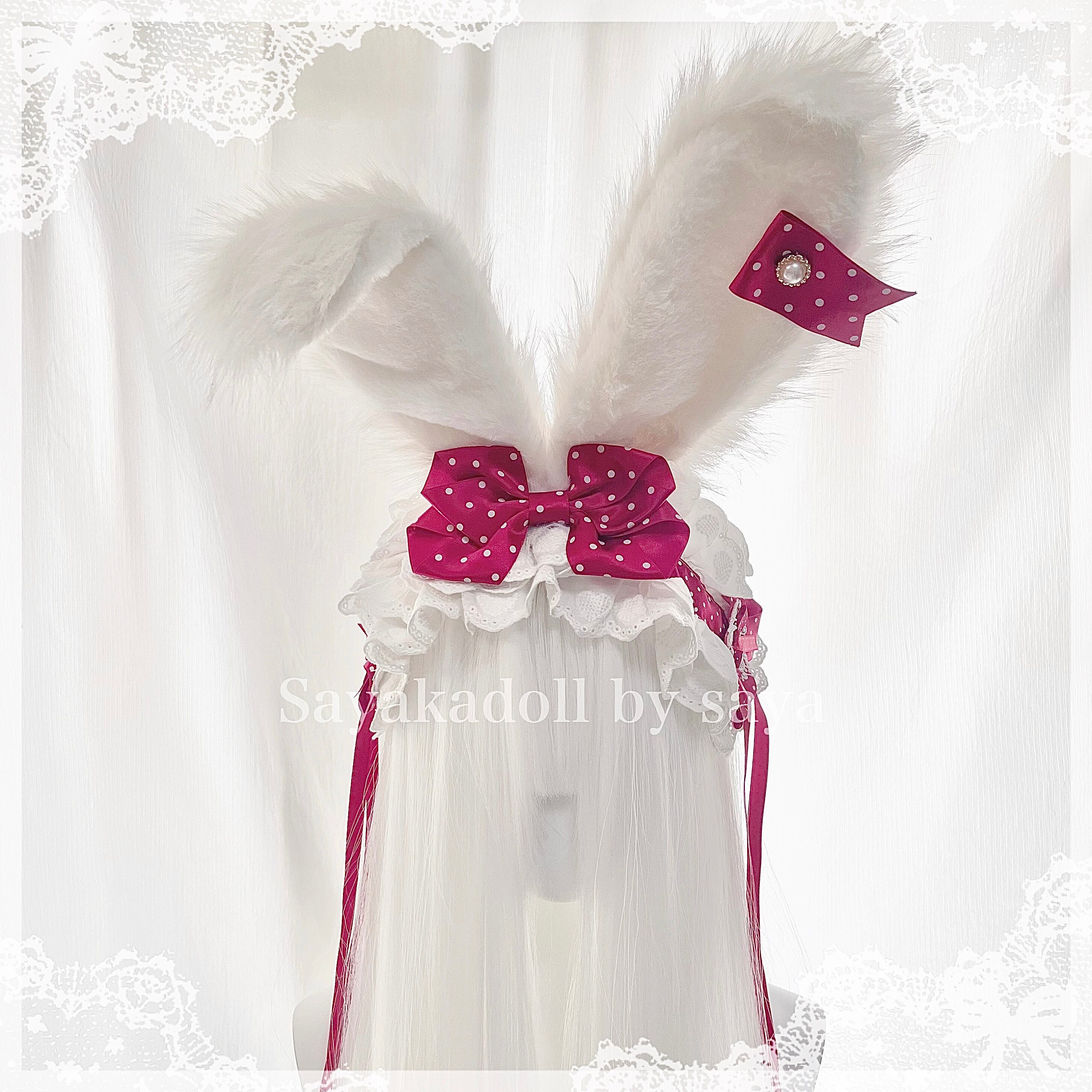 ♡ 【全3色】MAID うさみみ フリルレース ドット柄サテンリボンヘッドドレス red ♡