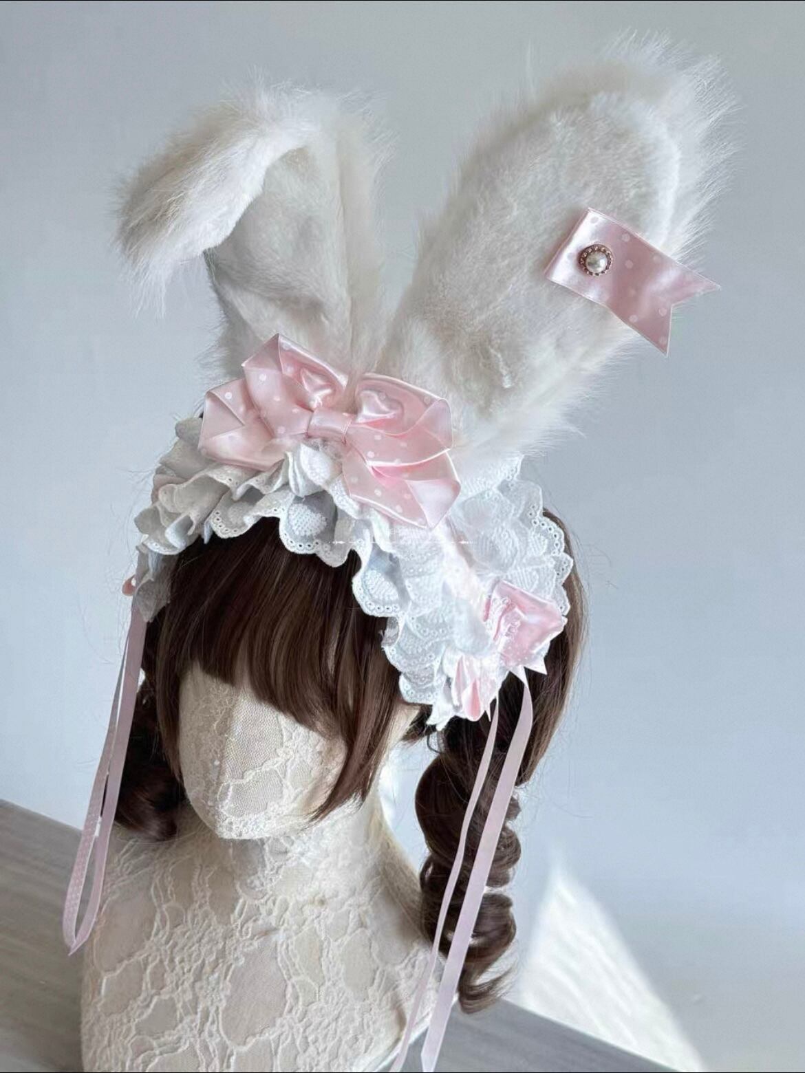 うさ耳は針金入りで、後ろには4箇所にヘアクリップ付き◎