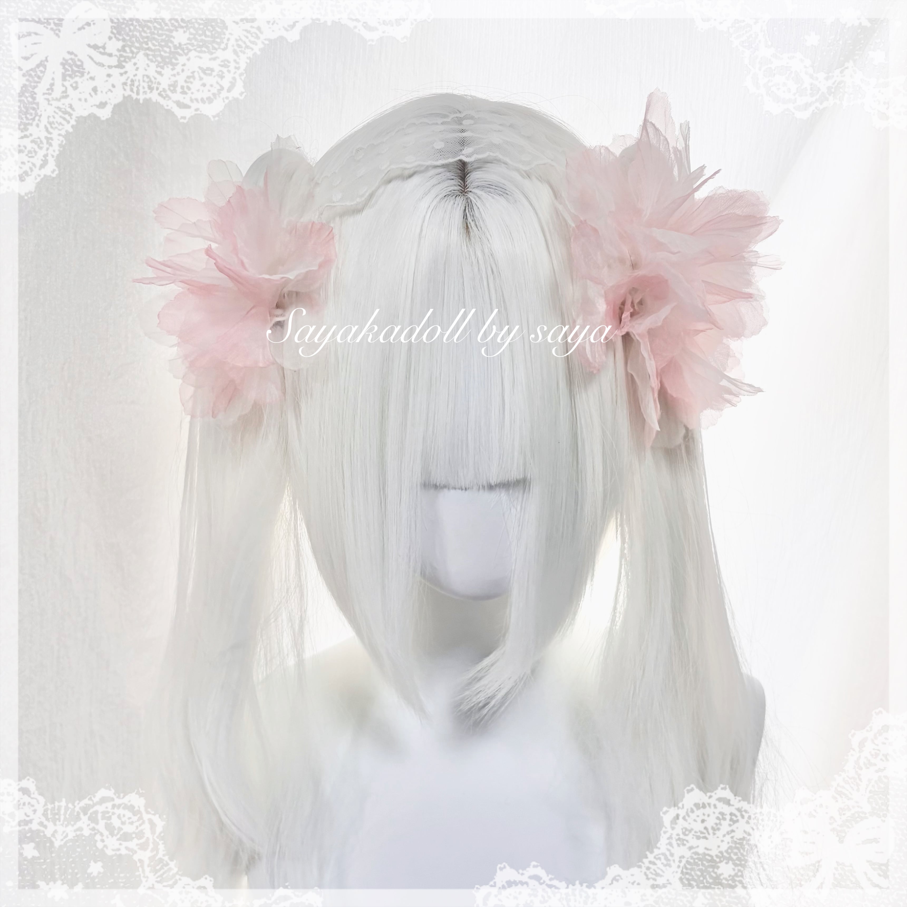 ♡【全6色】MAID シフォンフラワー レースヘッドドレス cream ♡