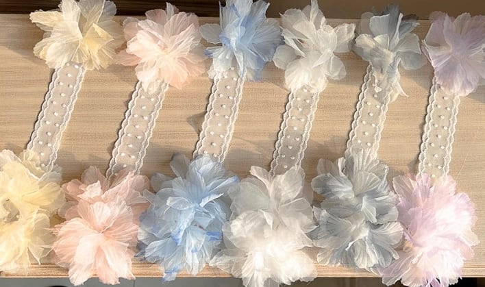 ♡【全6色】MAID シフォンフラワー レースヘッドドレス pink ♡