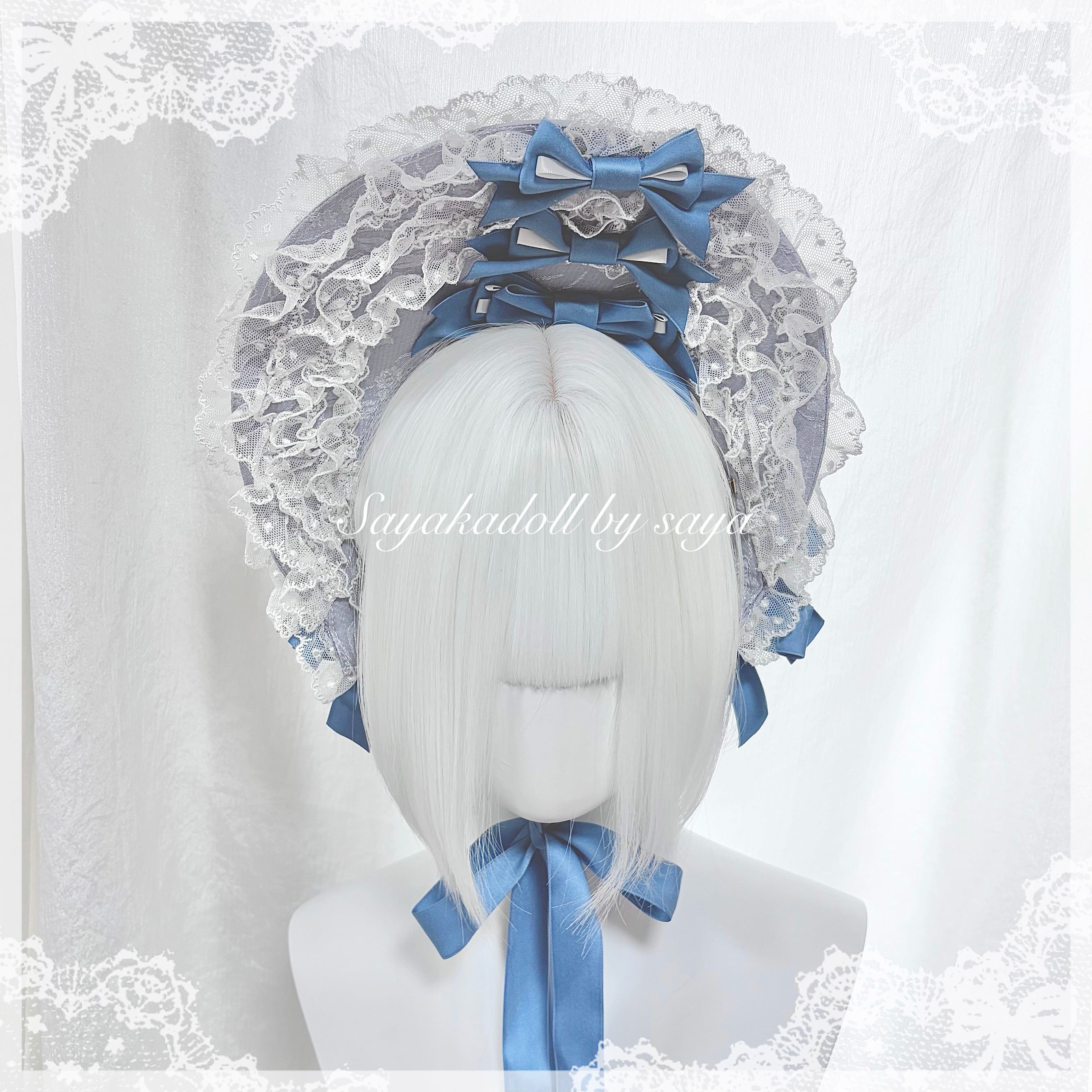 ♡【全3色】MAID 薔薇と百合 フリルレース リボンハーフボンネット blue ♡