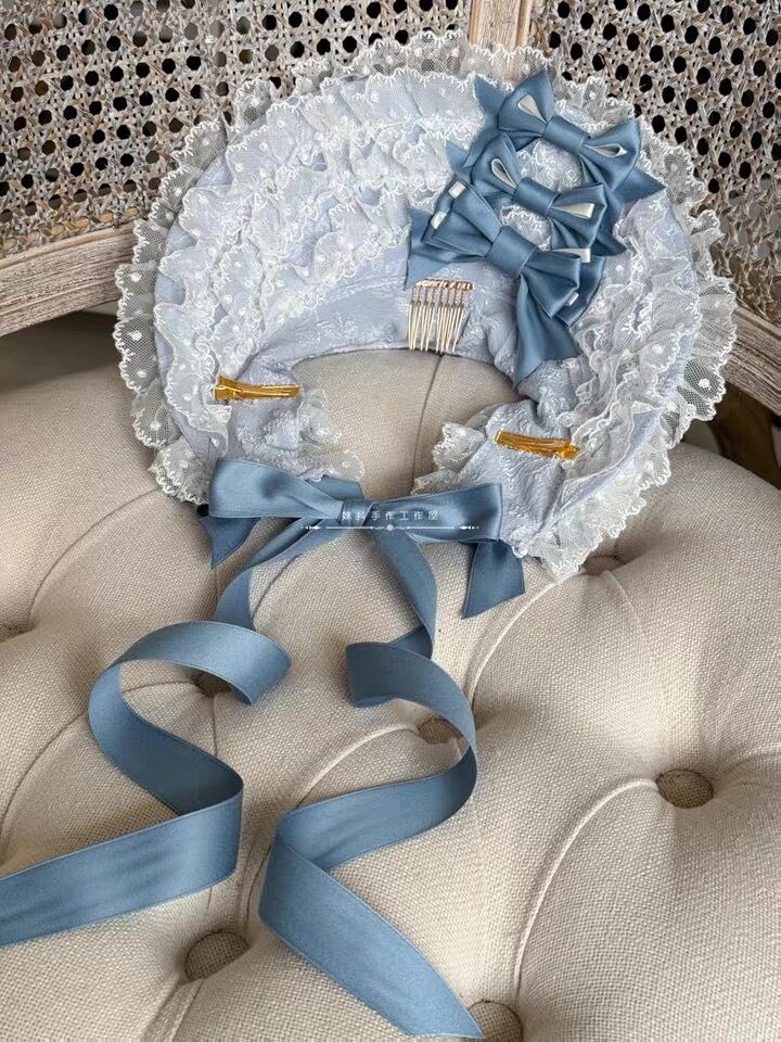 ♡【全3色】MAID 薔薇と百合 フリルレース リボンハーフボンネット smoky pink ♡