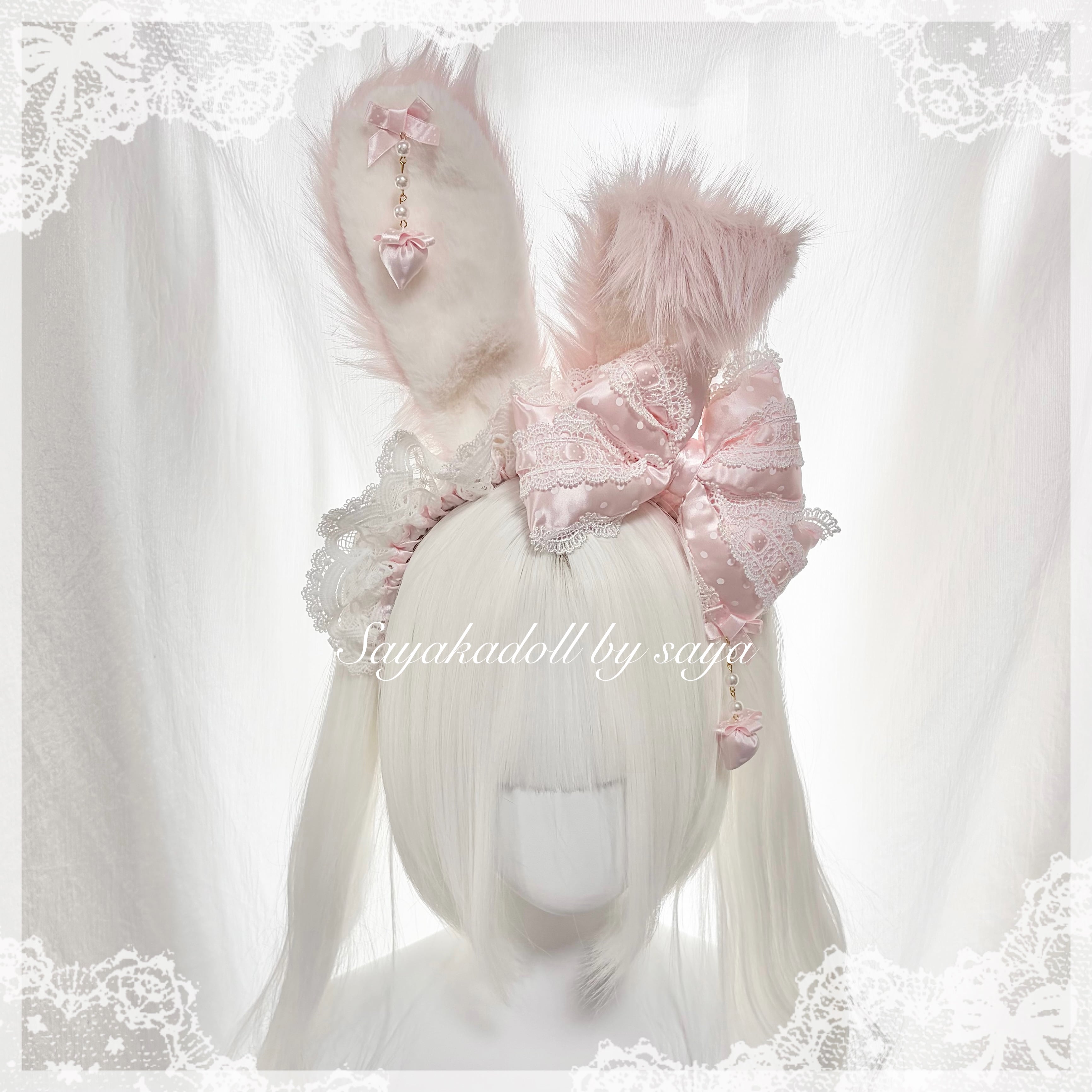 ♡【MAID】Strawberry ドット柄リボン 変幻自在うさみみフリルカチューシャ 3way cherry pink ♡