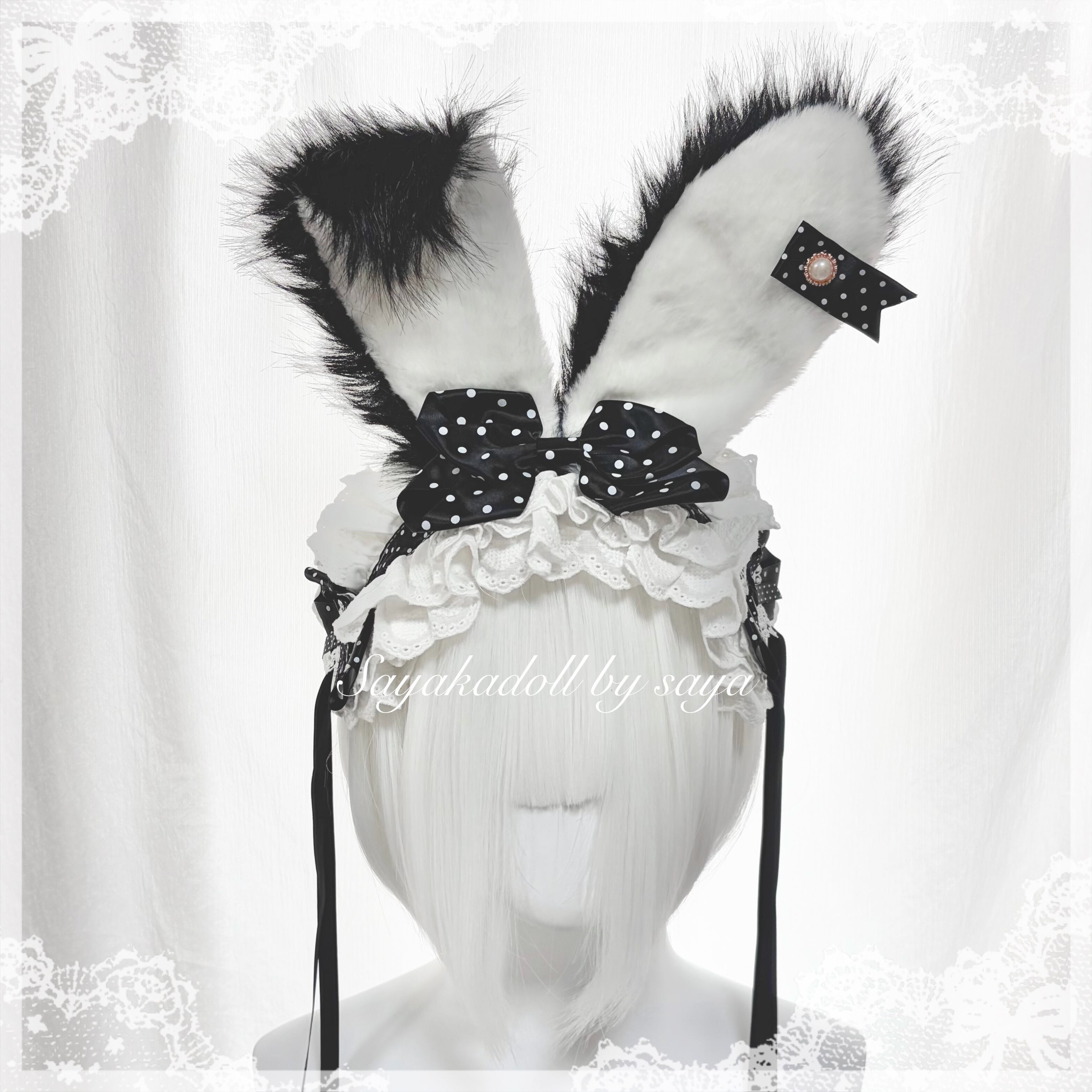 うさ耳は針金入りで、後ろには4箇所にヘアクリップ付き◎