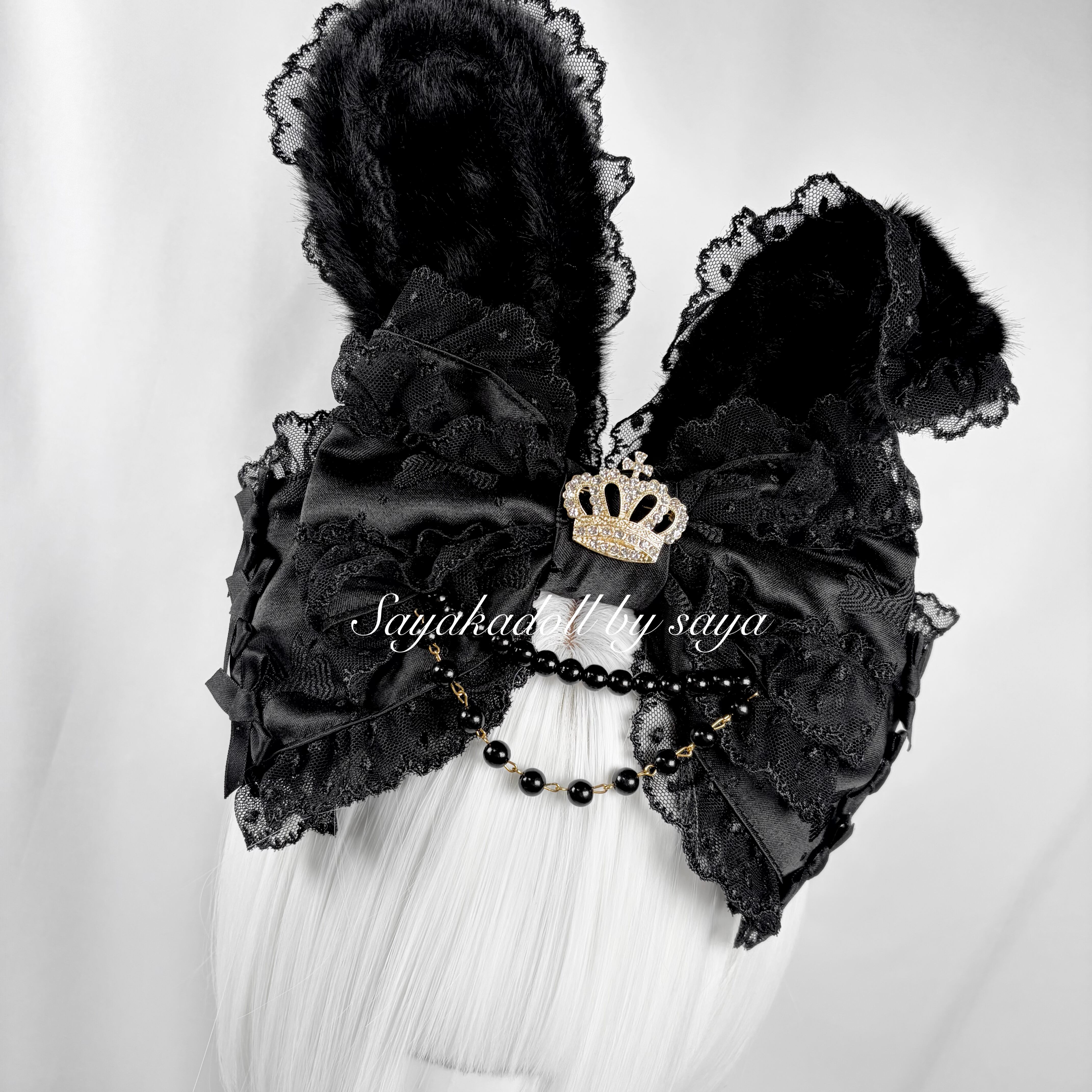 ♡【全4色】MAID 変幻自在⟡クラウンビジューパールリボン&うさ耳カチューシャ black ♡