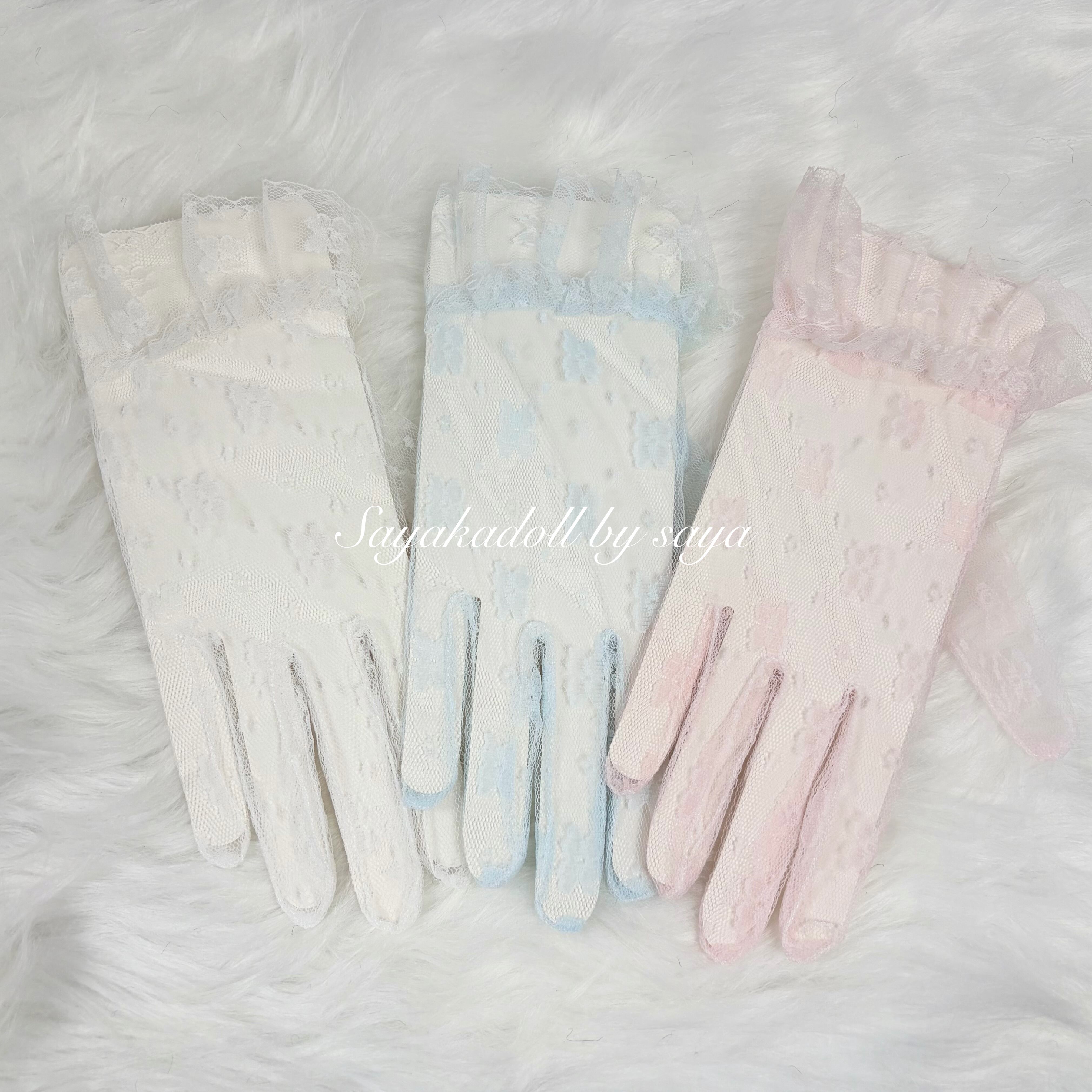 ♡【全3色】MAID フリルレース リボンカフス/お袖留め&手袋セット red ♡