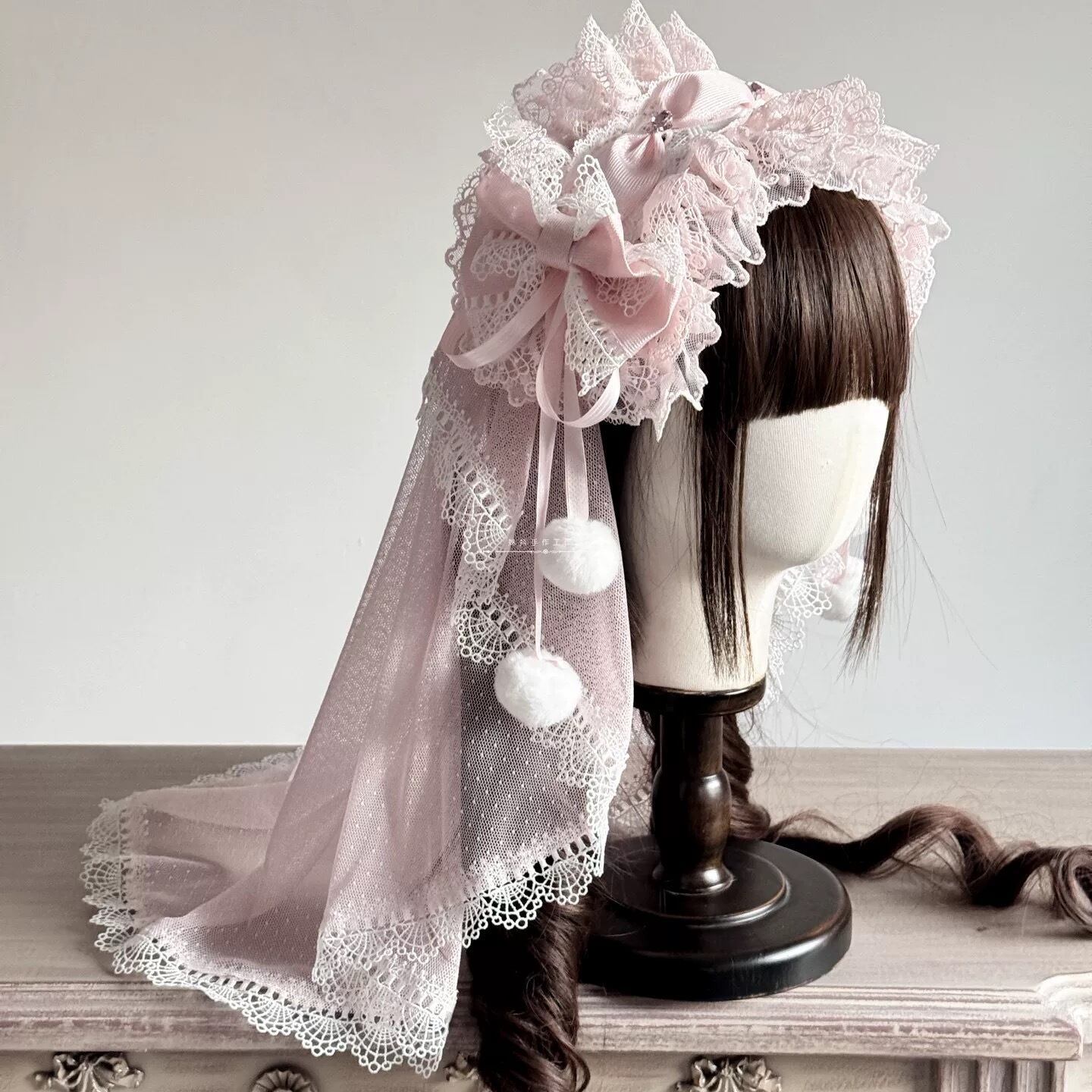 白を基調とした、ピンクレースのヴェール