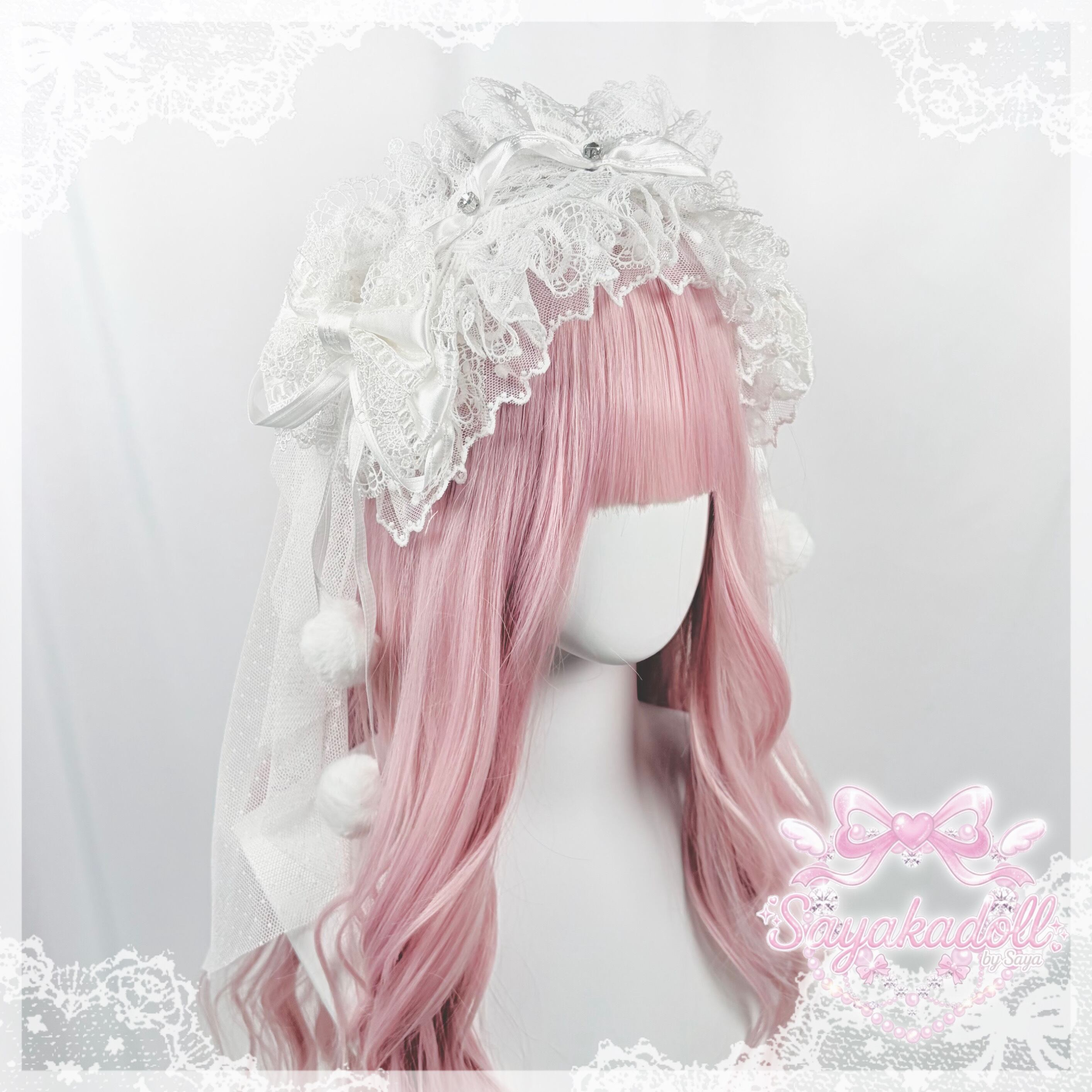 白を基調とした、ピンクレースのヴェール