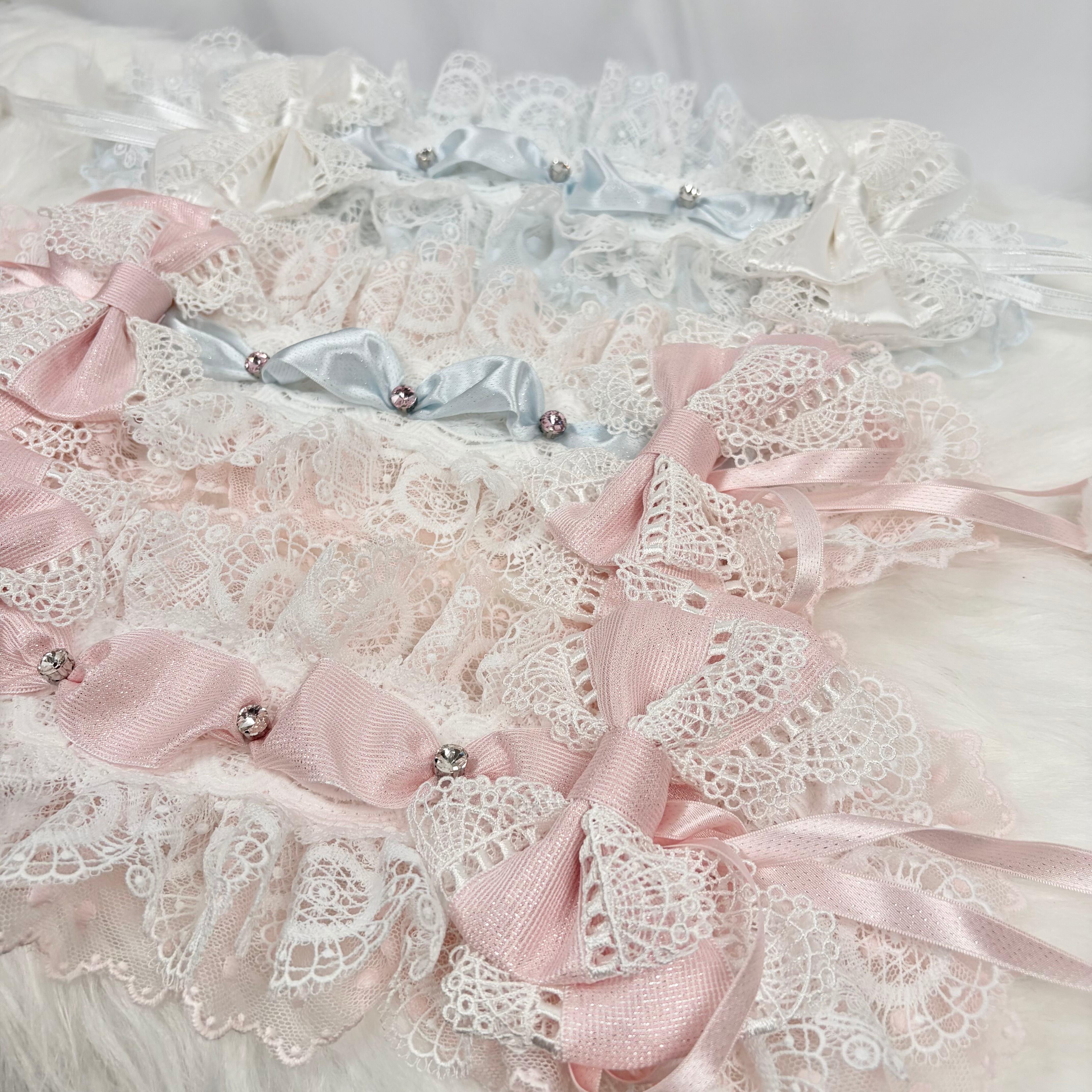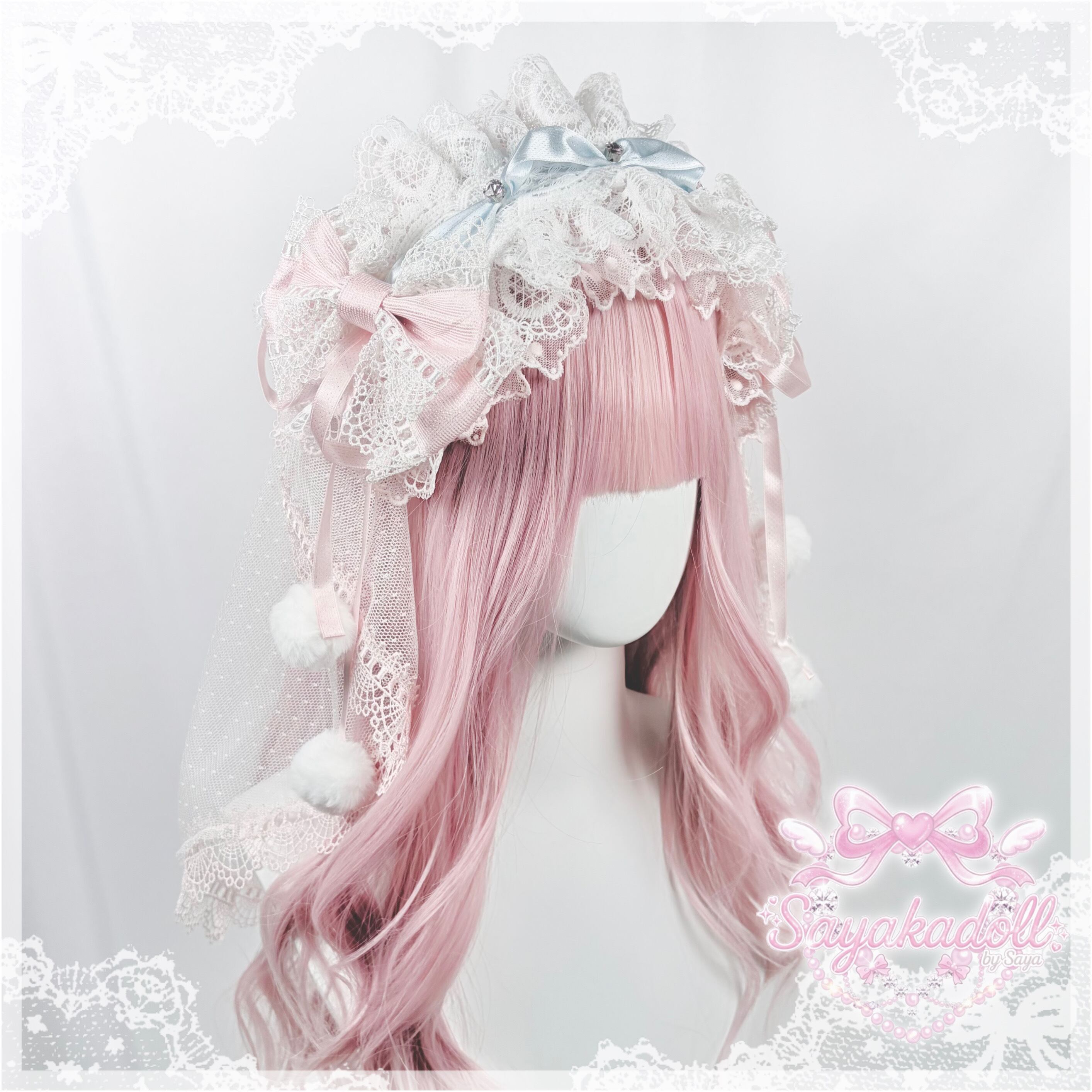 ♡【全5色】MAID 3way マシュマロリボンの夢色フリルレースヘッドドレス+ヴェールセット light blue ♡
