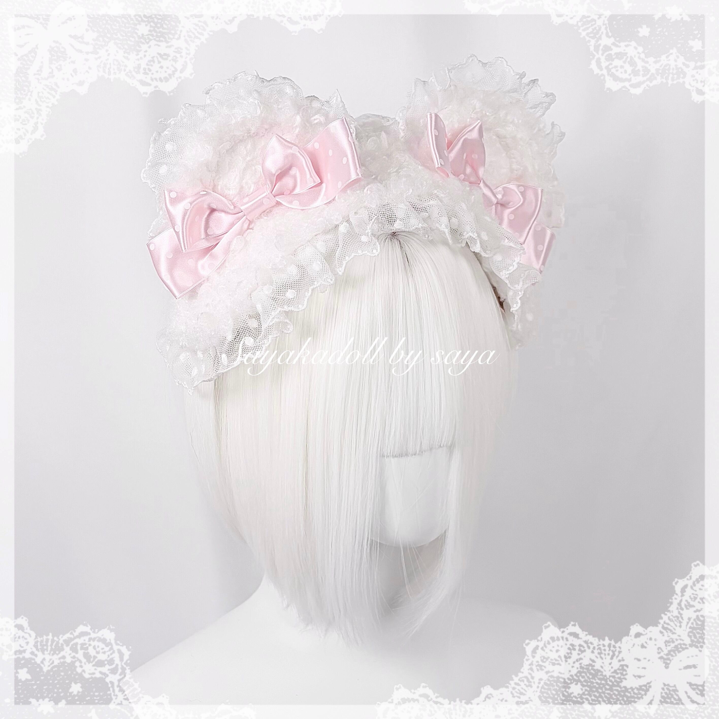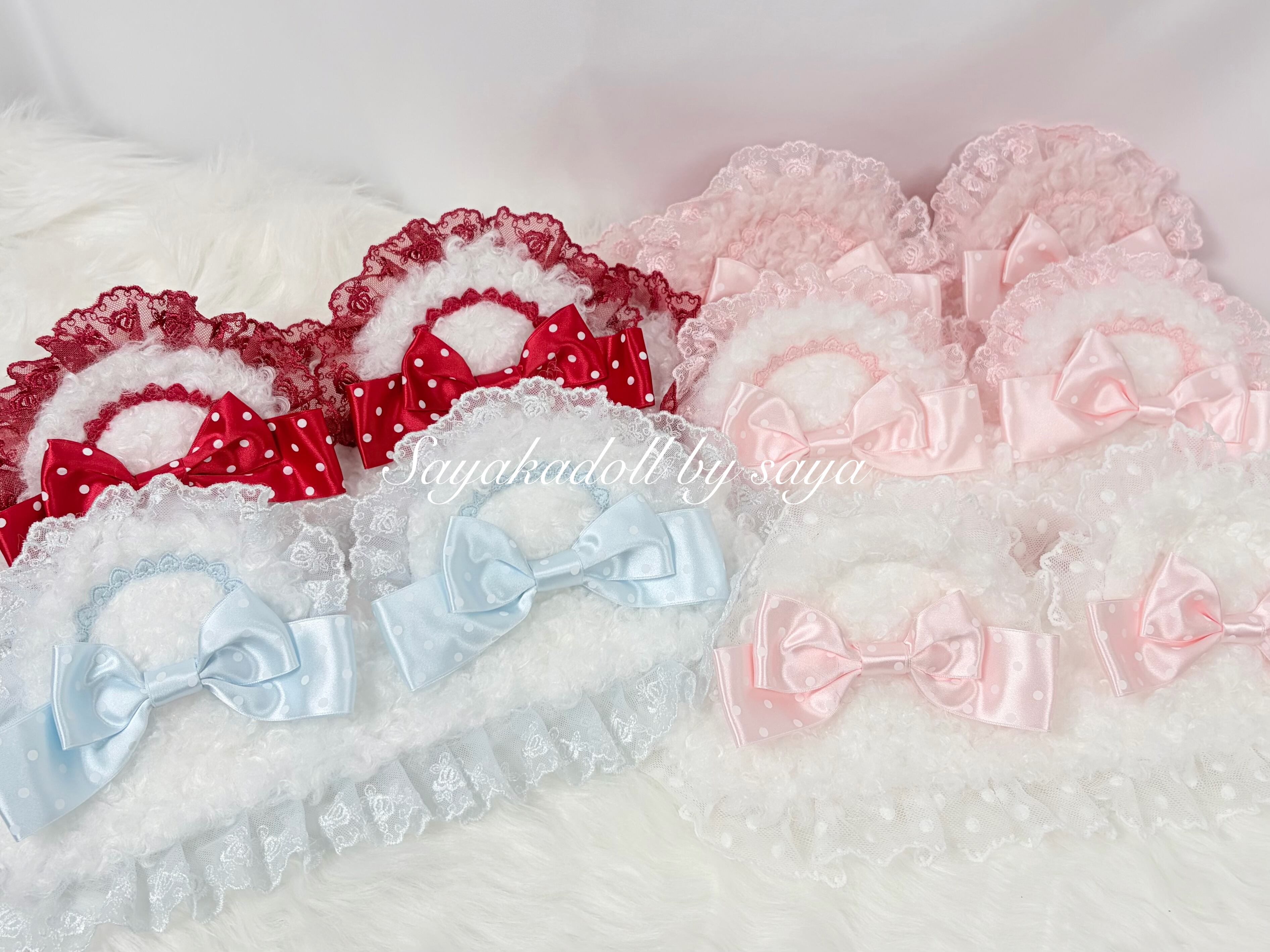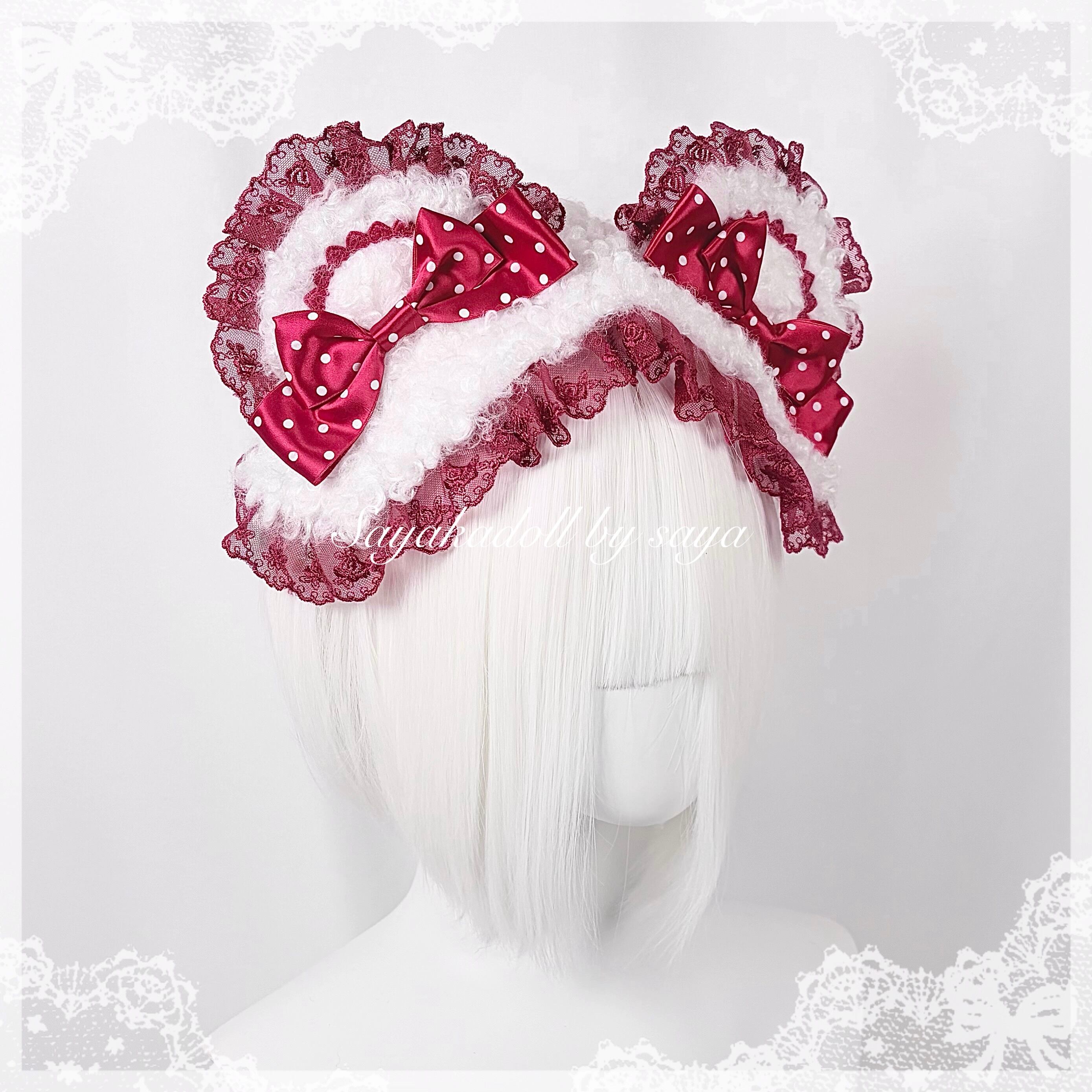 ♡【全5色】MAID もこもこくまさん ドット柄リボン フリルレースヘッドドレス chocolate ♡
