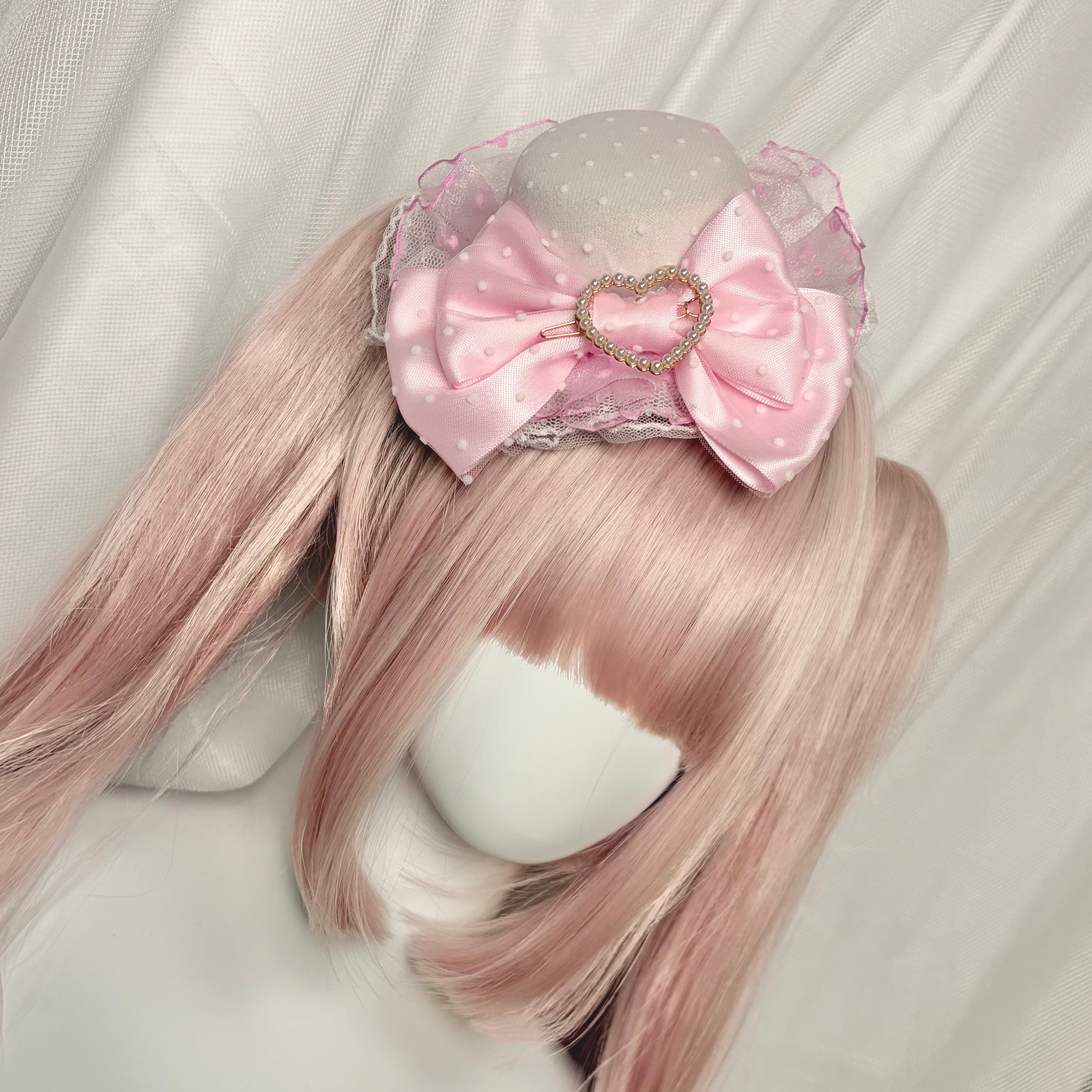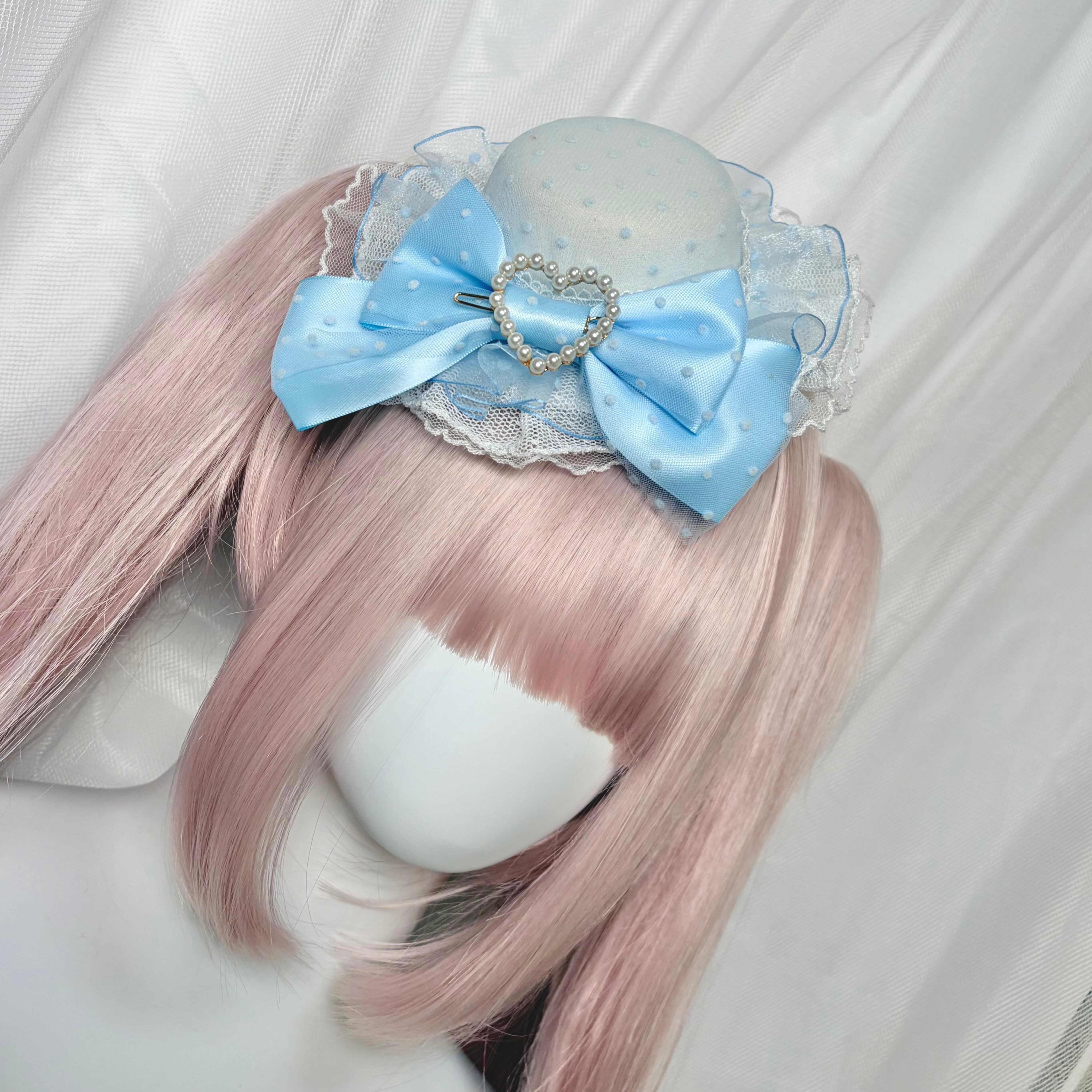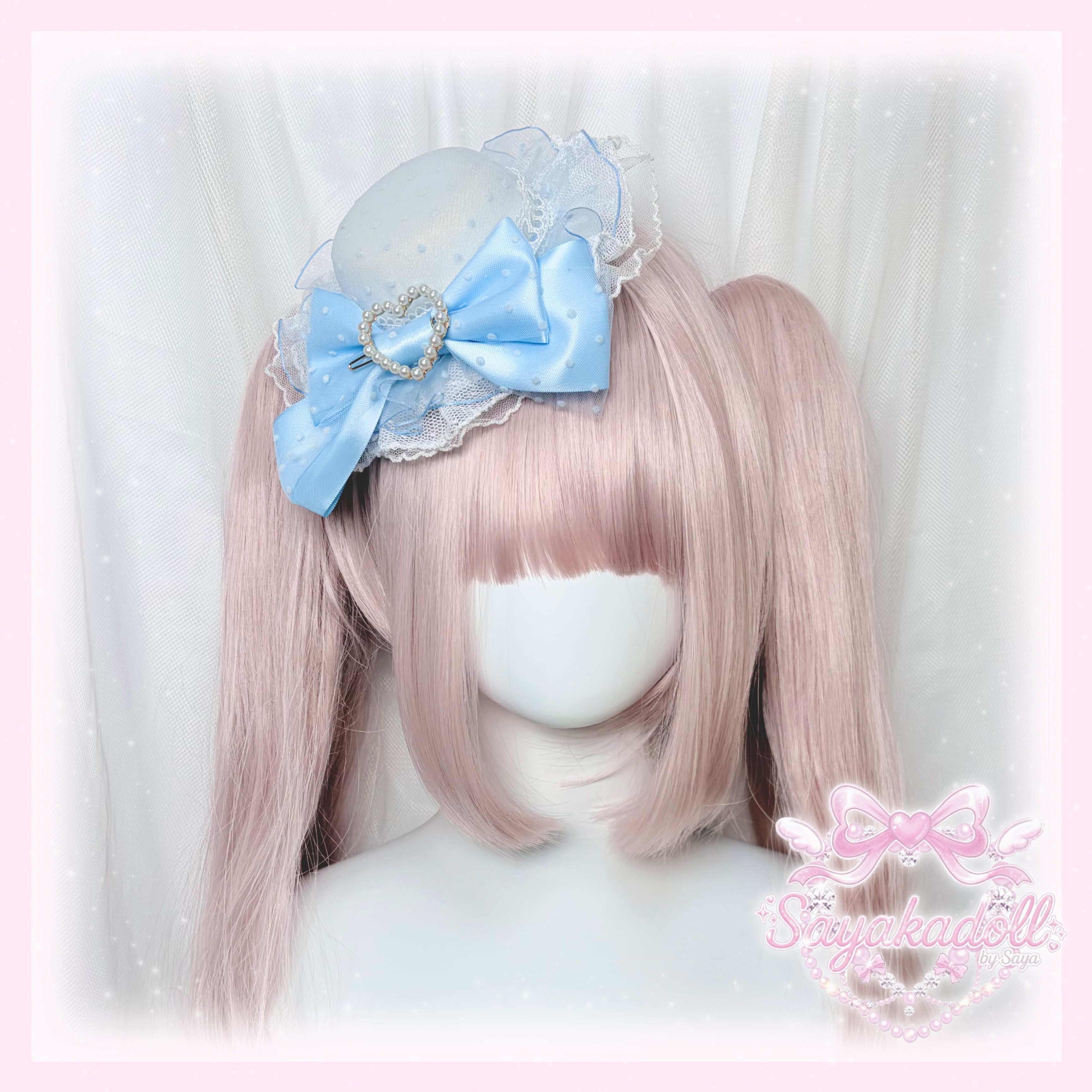♡【全4色】ドット柄 チュールリボン パールハートロリィタミニハット light blue ♡