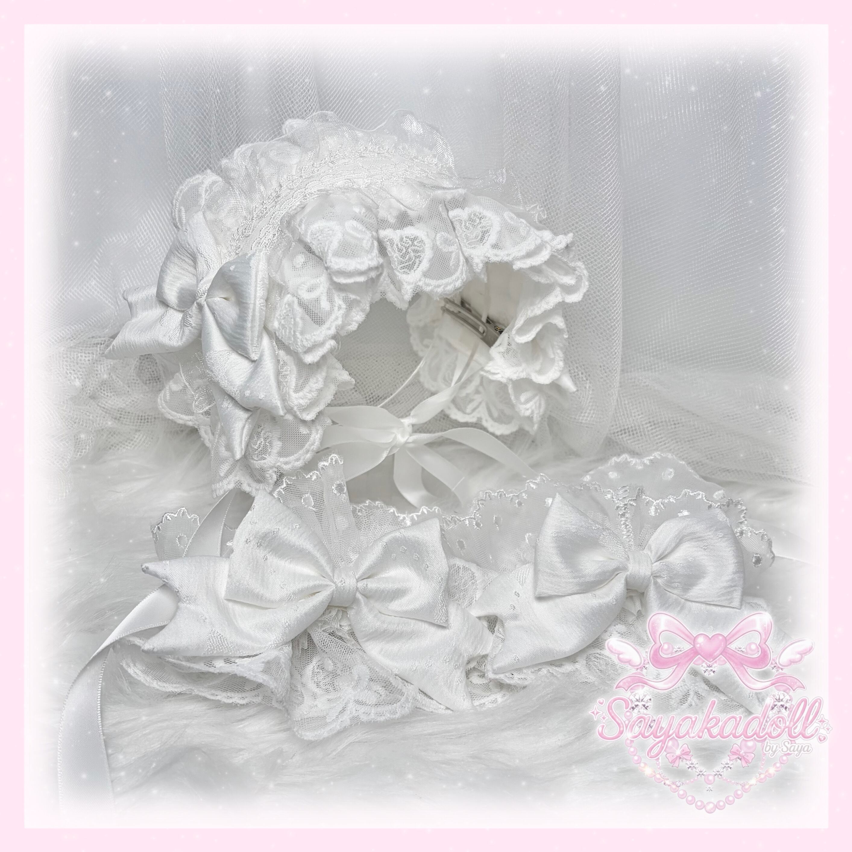 量産型・地雷系やゴシック・ロリータ・サブカル・ Y2Kファッションにぴったりな、フリルとリボンたっぷりのヘッドドレス&お袖留めのsetになります♡