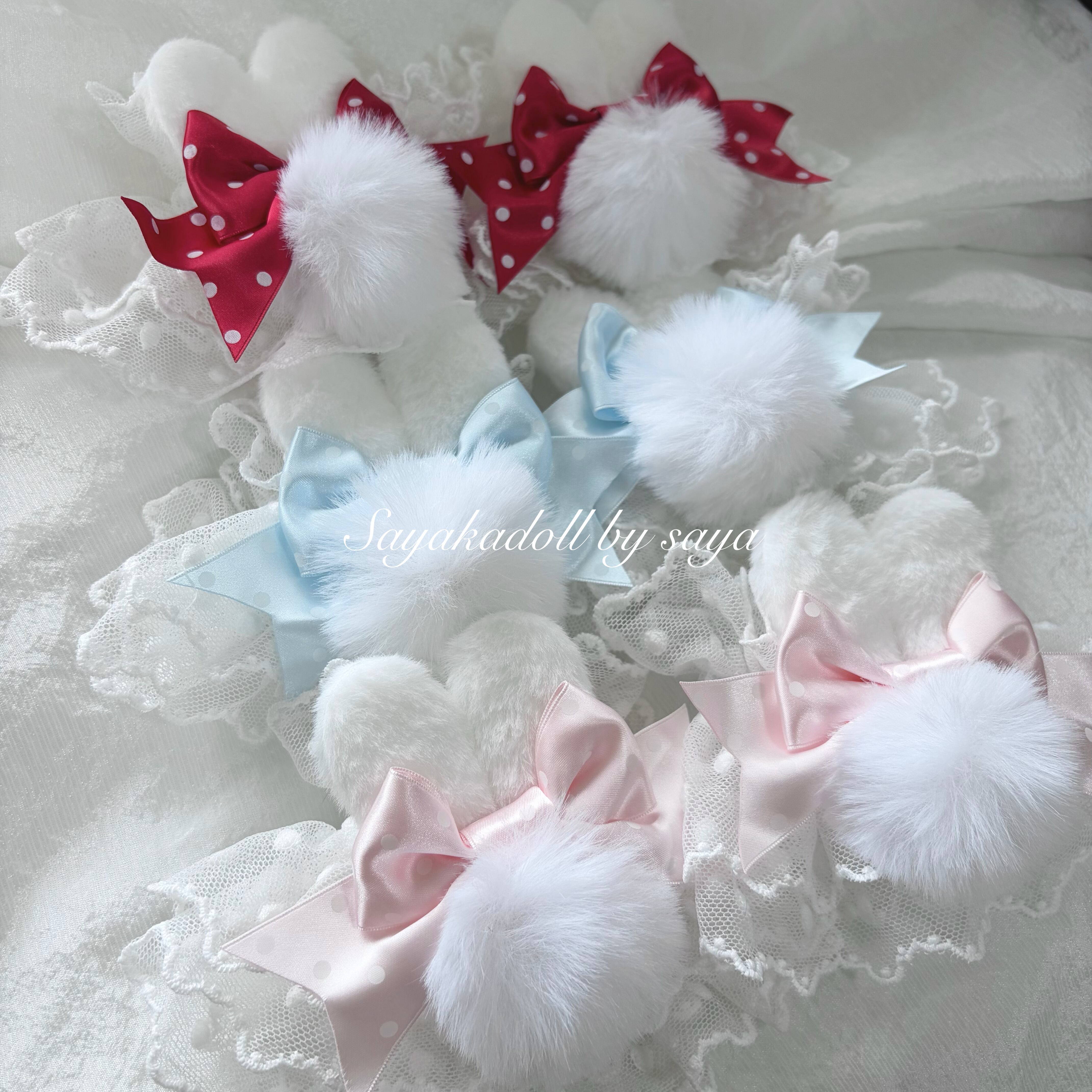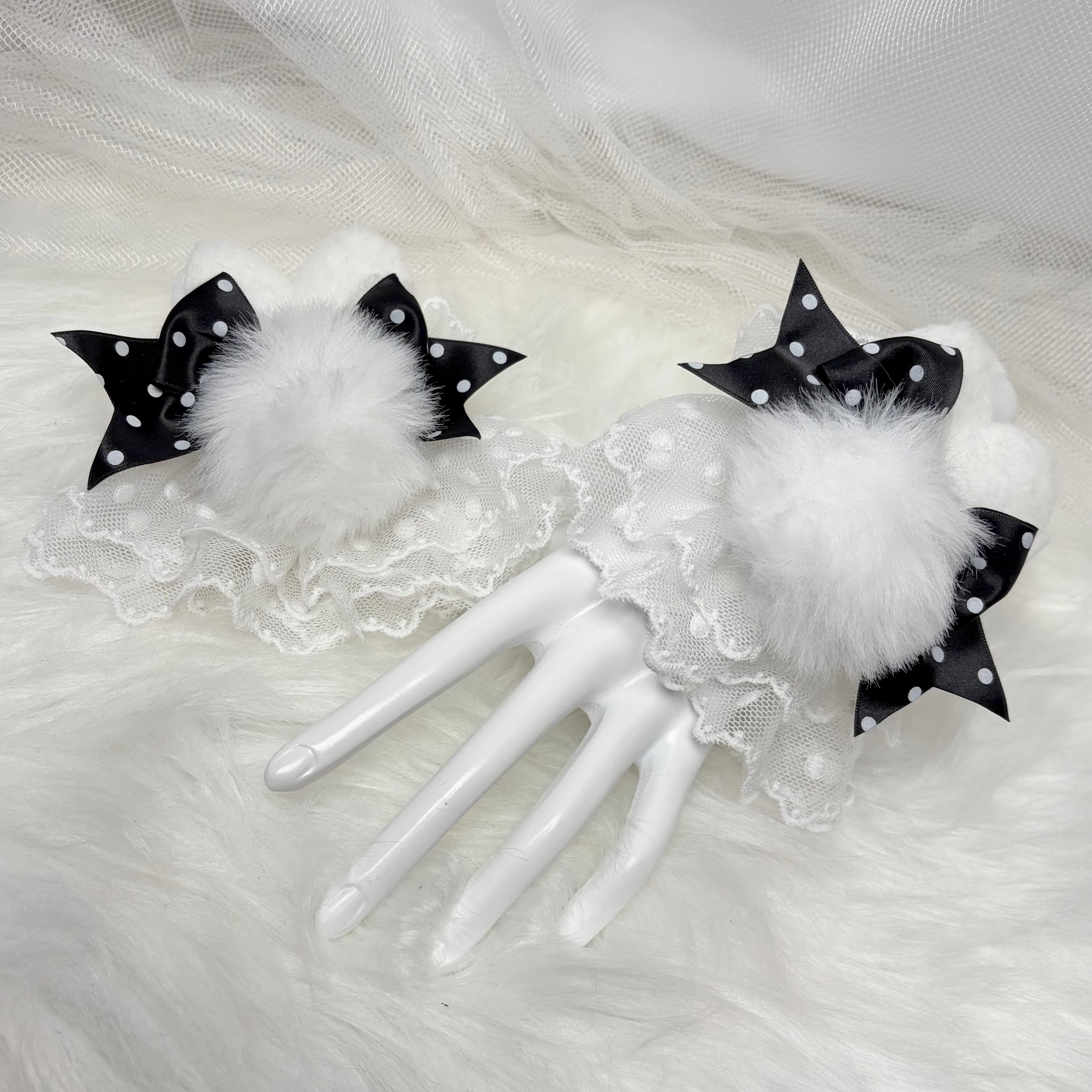♡【全5色】MAID うさぎさん付きドット柄リボンカフス/お袖留め black ♡