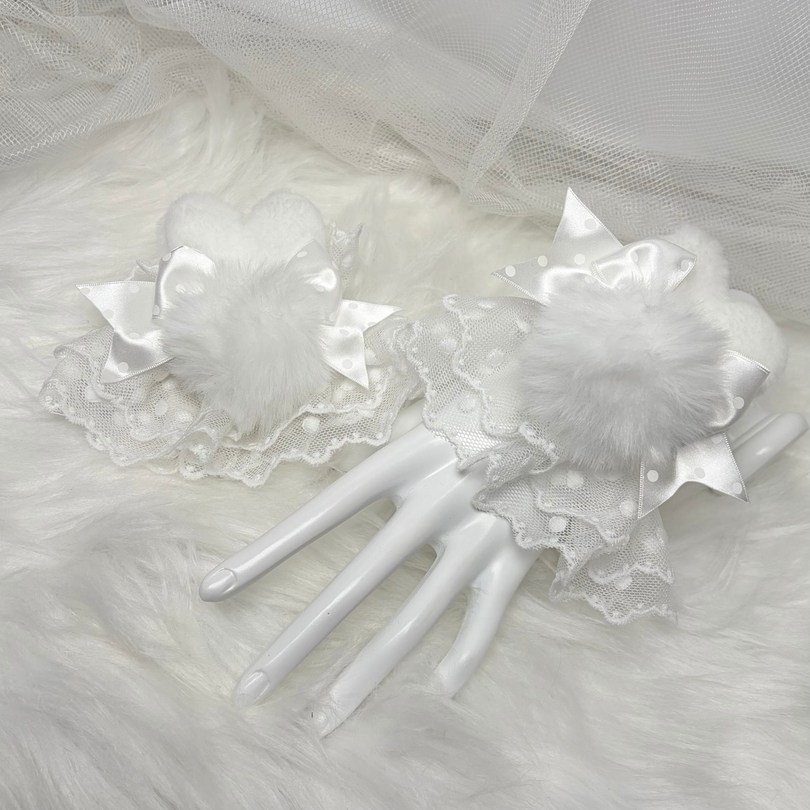 ♡【全5色】MAID うさぎさん付きドット柄リボンカフス/お袖留め white ♡