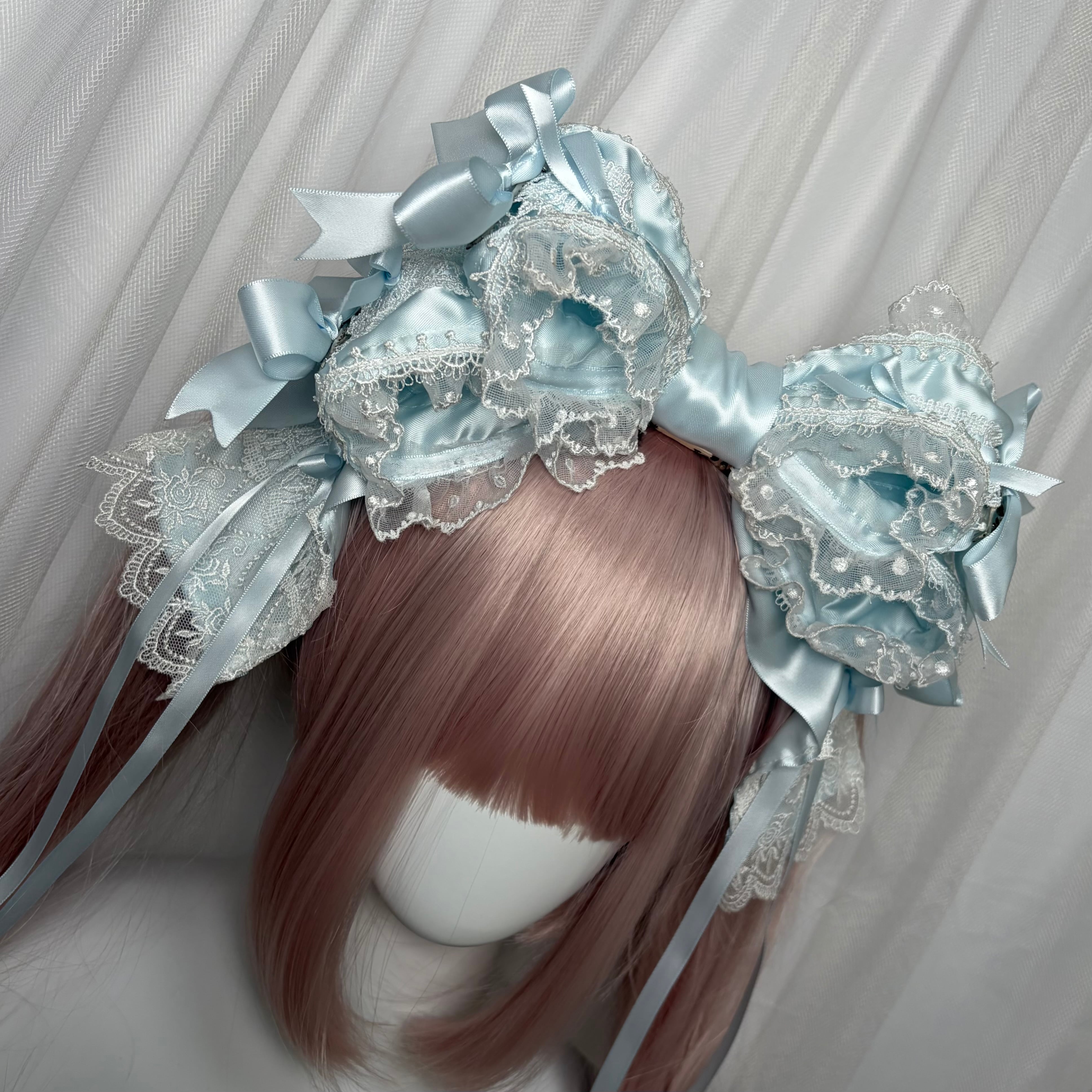 ♡【全3色】変幻自在 姫系 フリルレース 3段リボンbigヘアクリップ light blue ♡