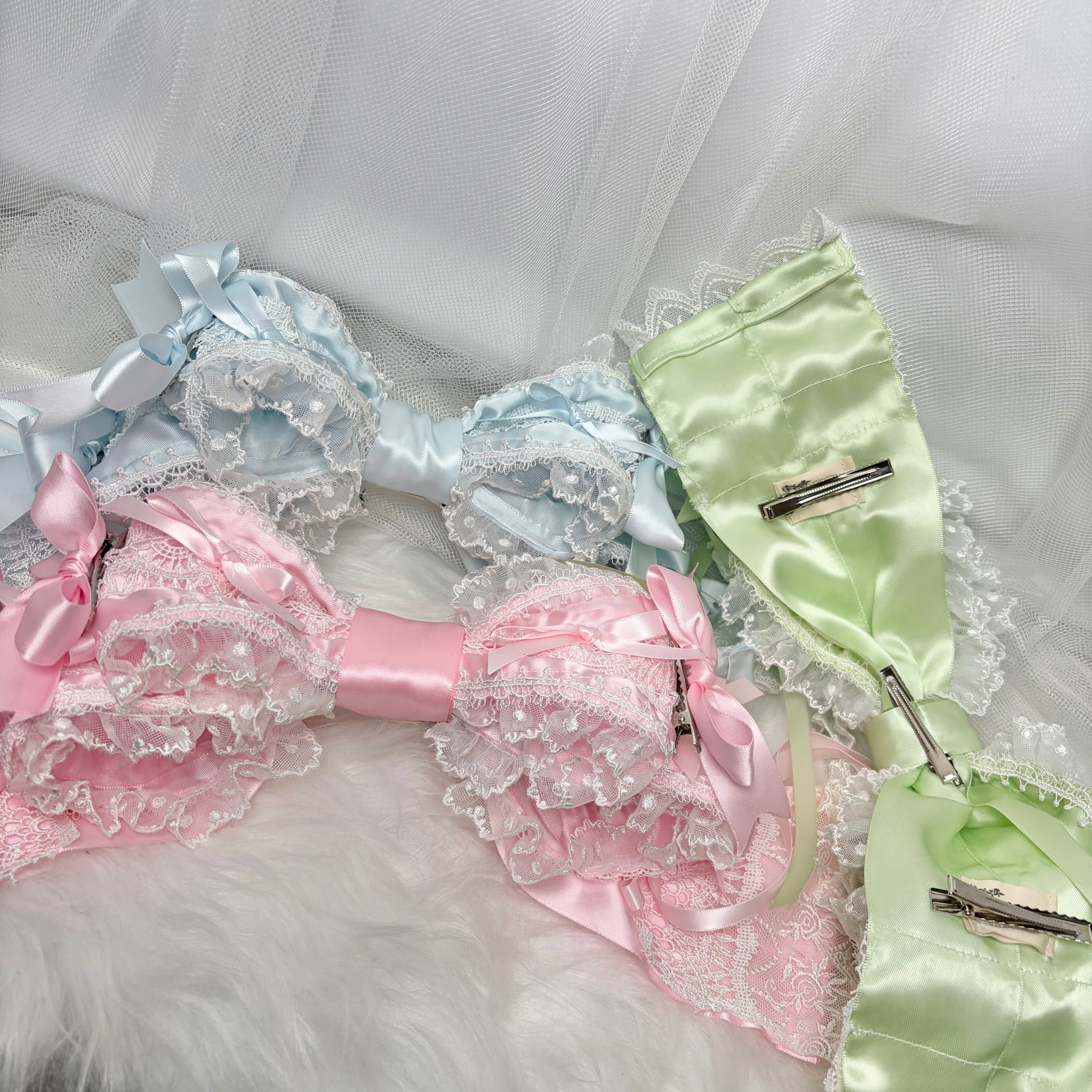 ♡【全3色】変幻自在 姫系 フリルレース 3段リボンbigヘアクリップ pink ♡