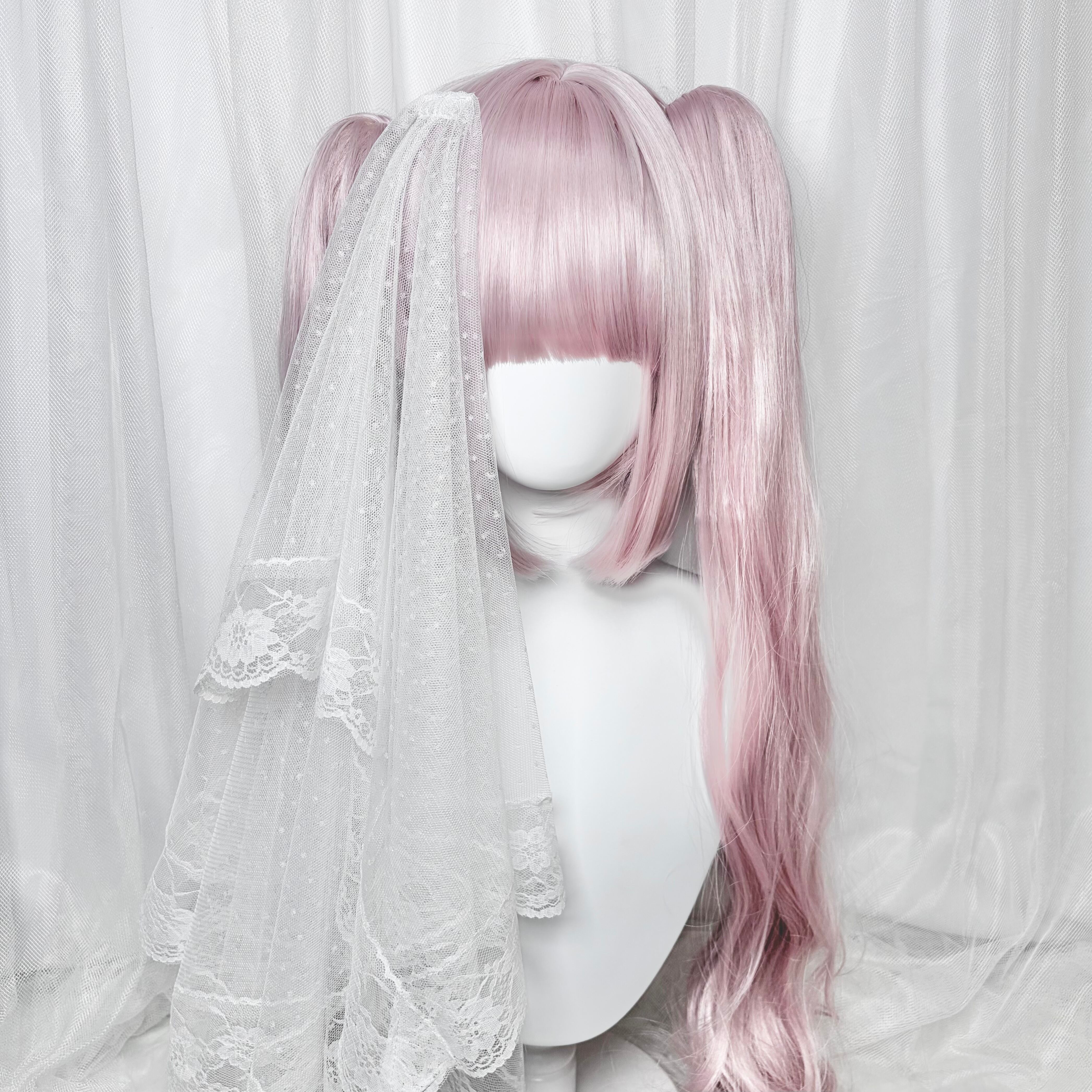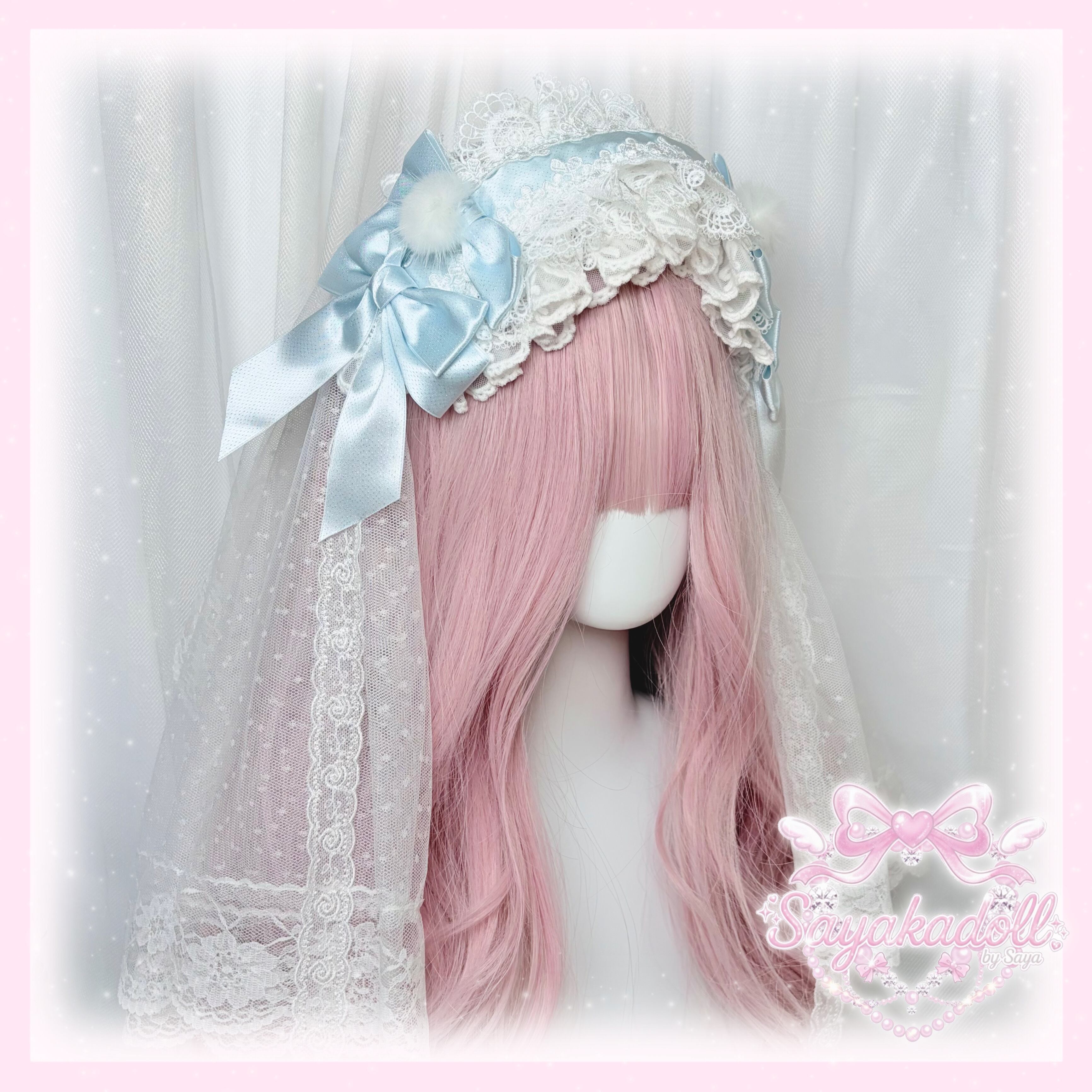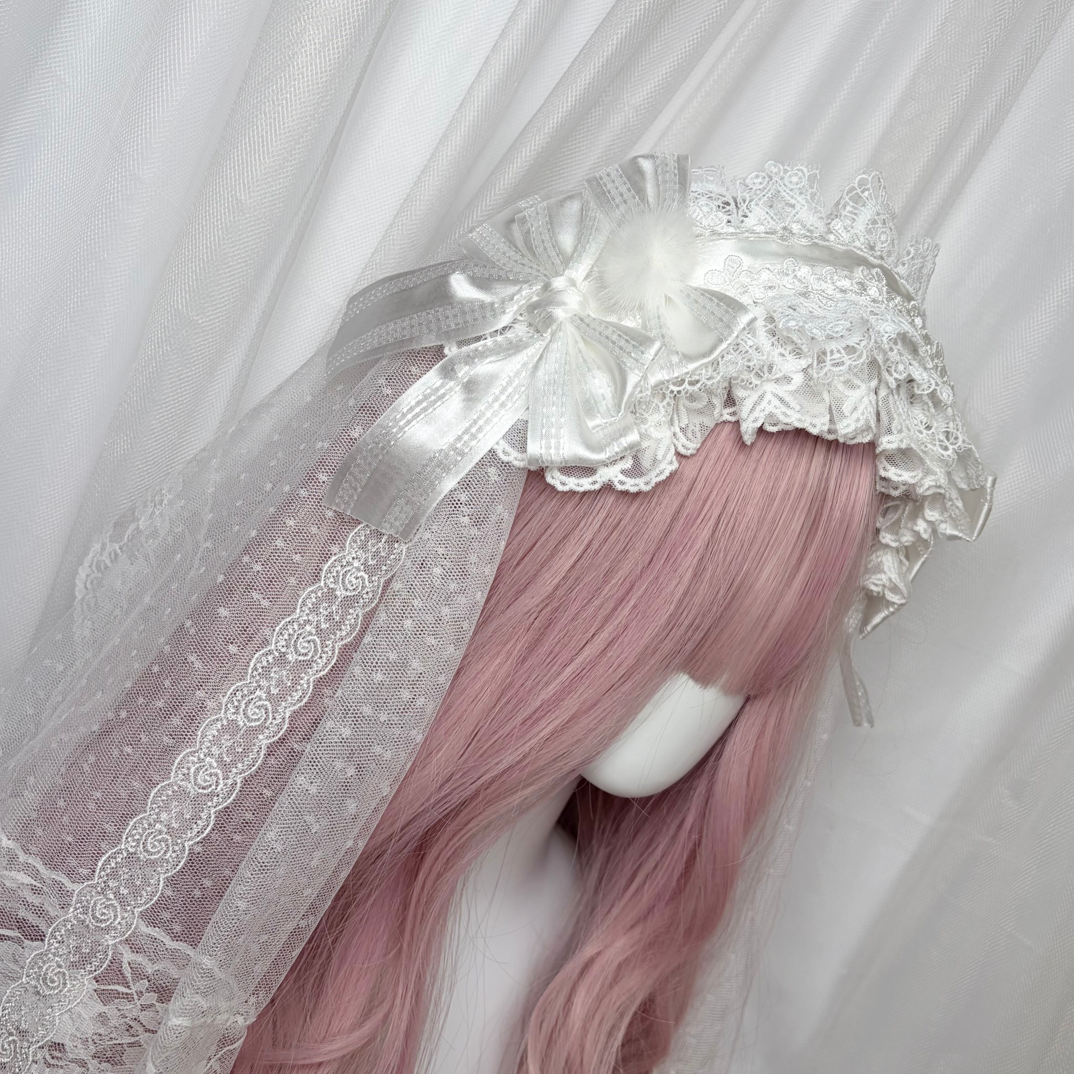 ♡【全5色】ヴェール別売り ぽんぽん付き ダブルリボン フリルレースヘッドドレス red ♡