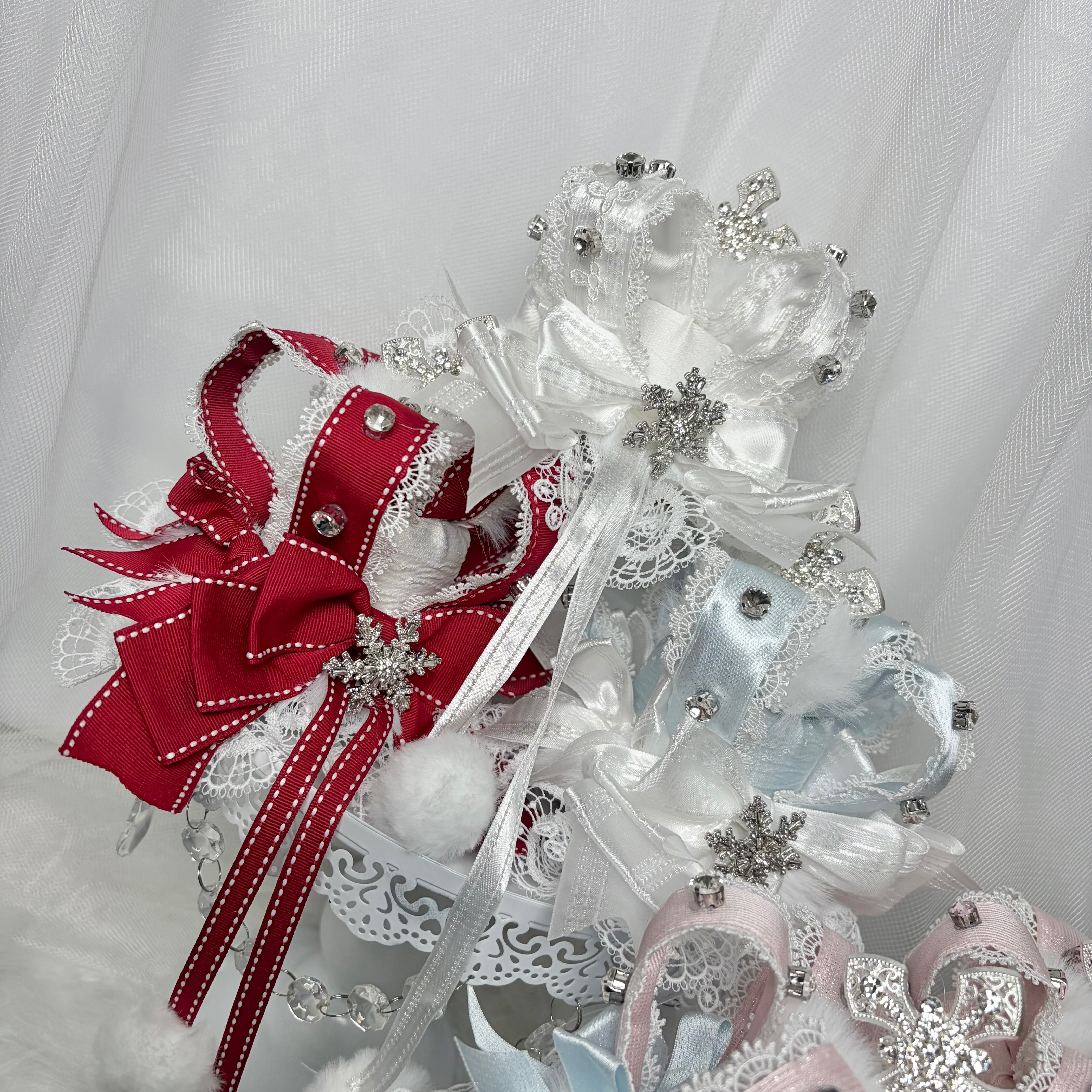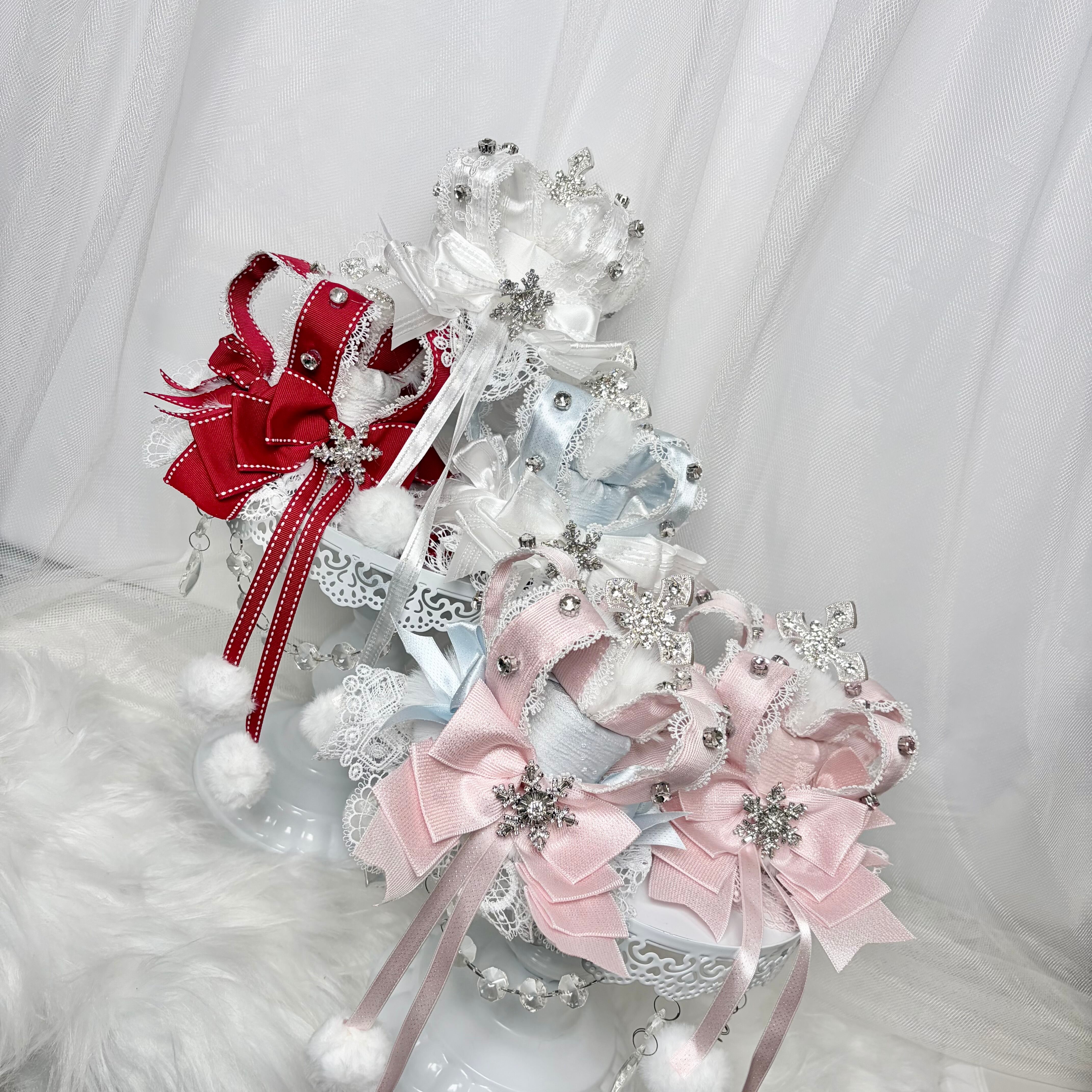 ♡【全5色】MAID スノープリンセス 雪の結晶ビジュークラウン&ぽんぽんリボンクラウンミニハット light blue×pink ♡