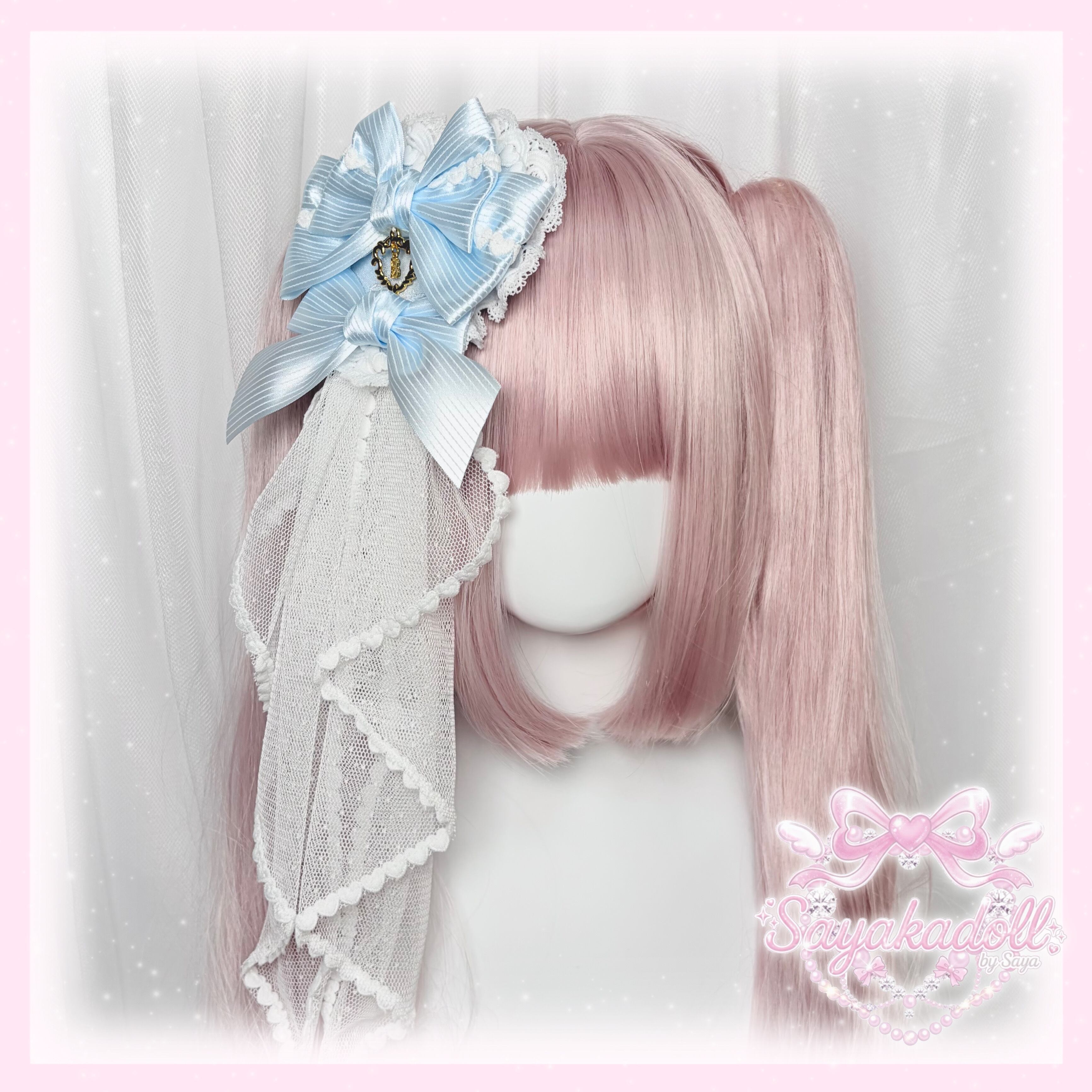 ♡【全3色】MAID ヴェール付き ストライプサテンリボンヘアクリップ white ♡