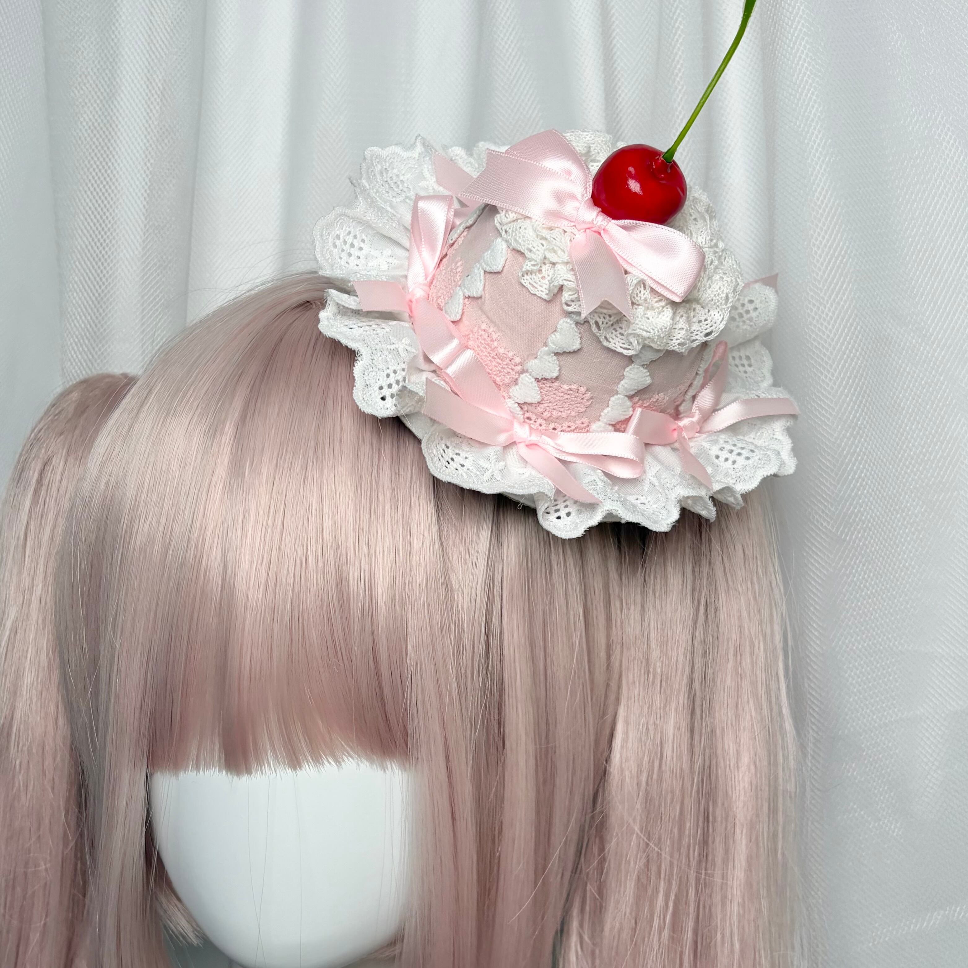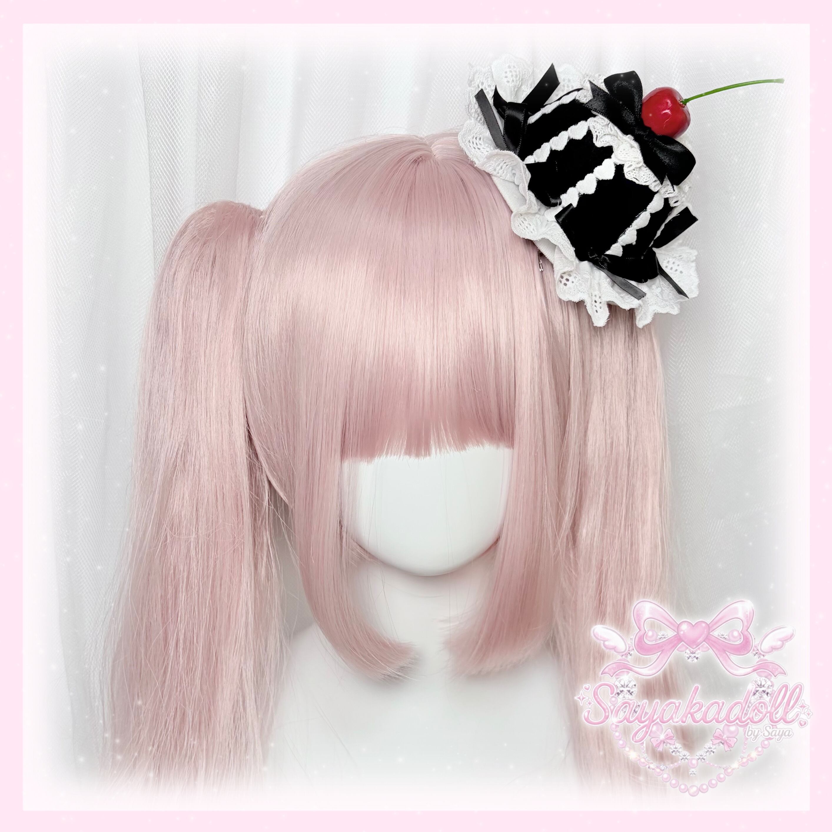 ♡【全4色】スイートお茶会 ちょこんとチェリーのフリルリボンケーキ風ミニハットヘアクリップ black ♡