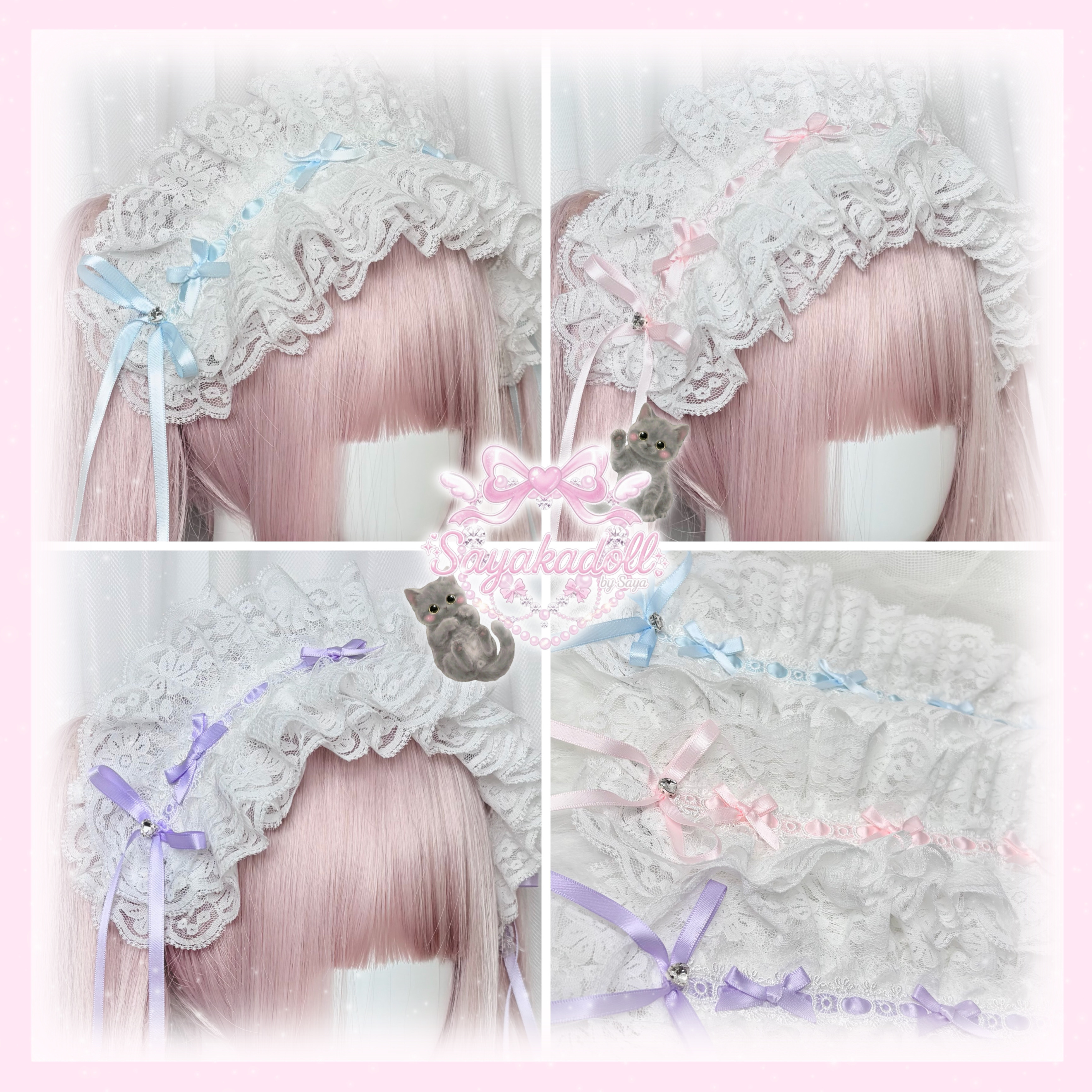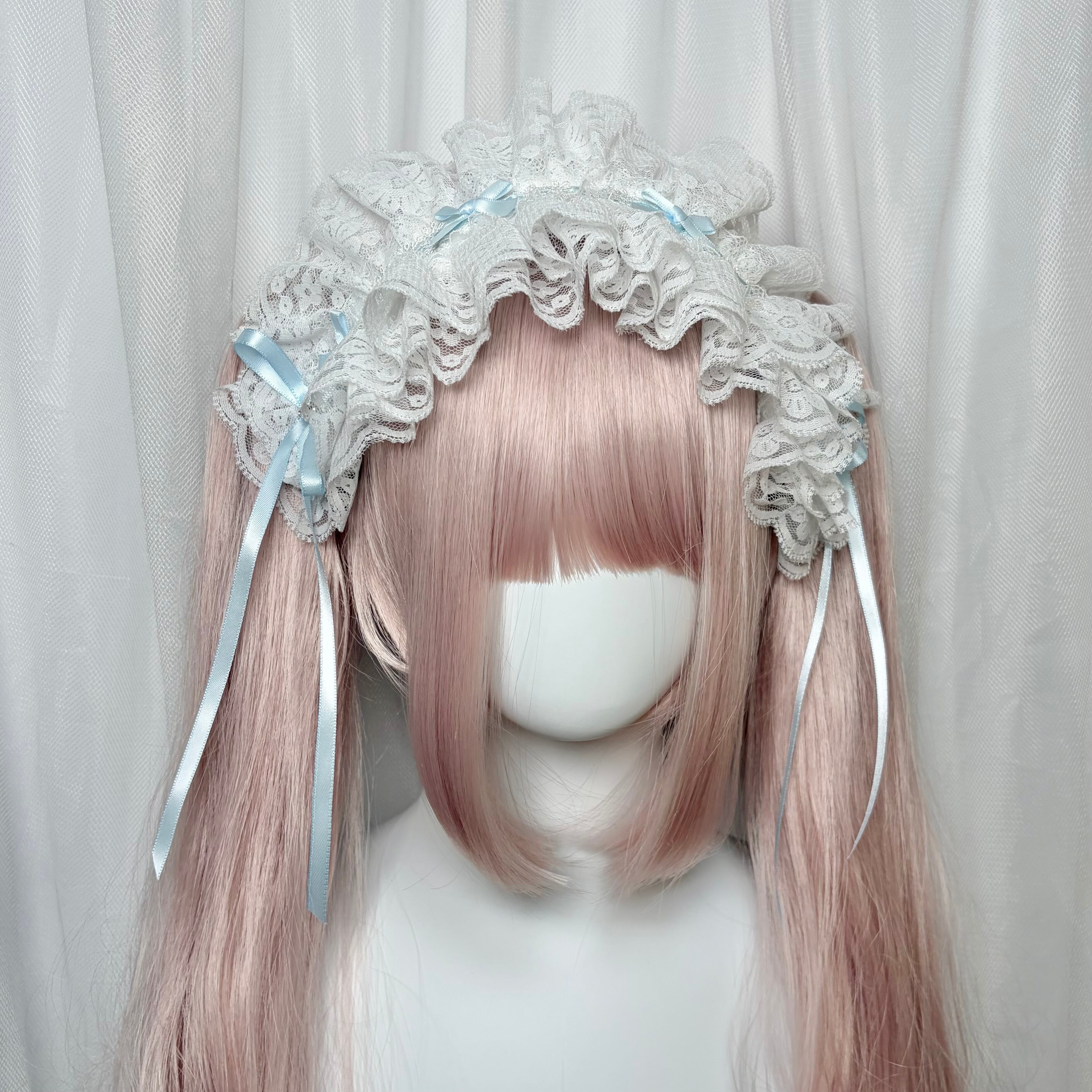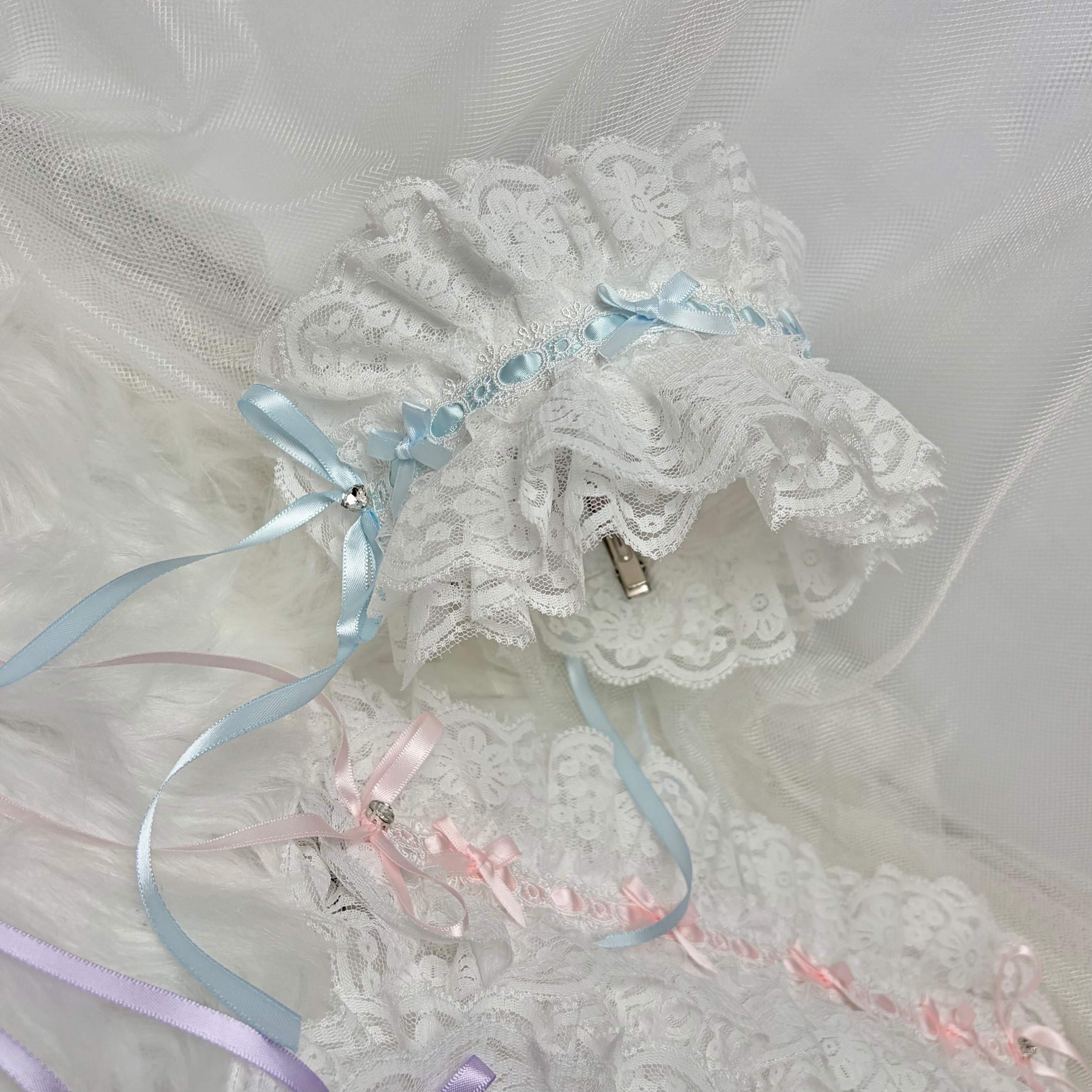 ♡【Sayakadoll Original No.11】【受注生産】 儚げパステルリボン ピュアホワイトフリルレースヘッドドレス light blue ♡