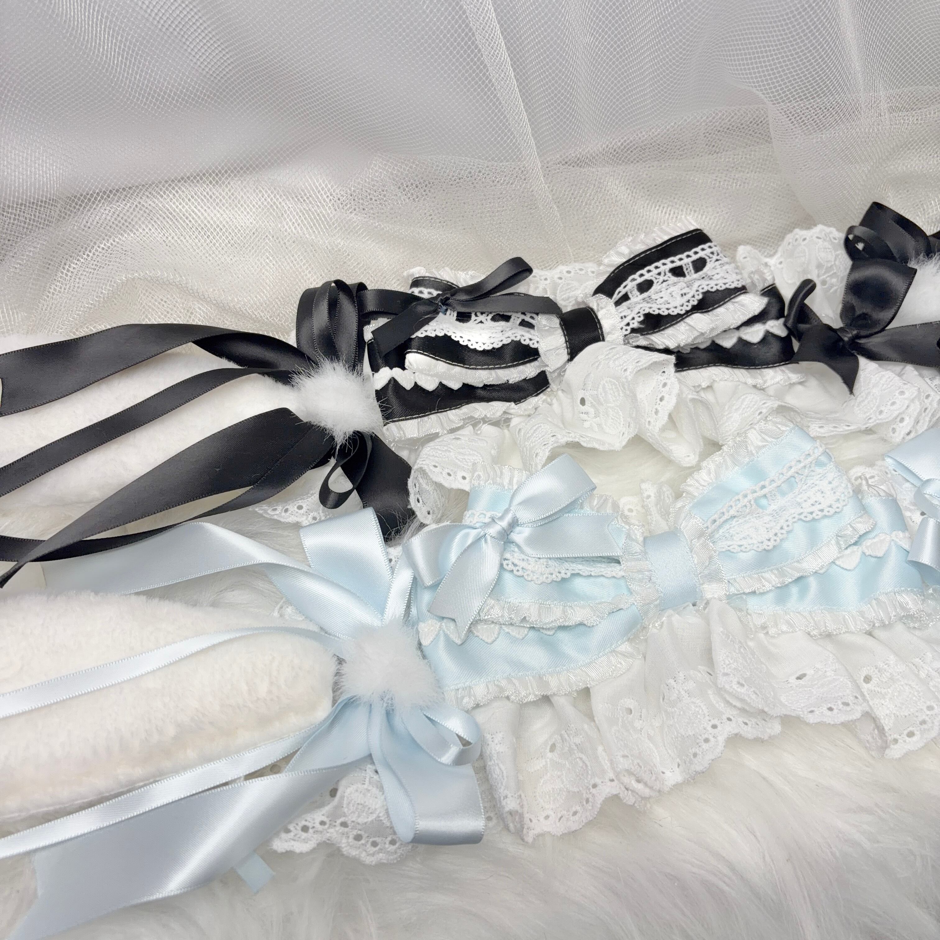 ♡ 【全4色】Milky bunny ぽんぽんリボン うさみみフリルレースヘッドドレス light blue ♡