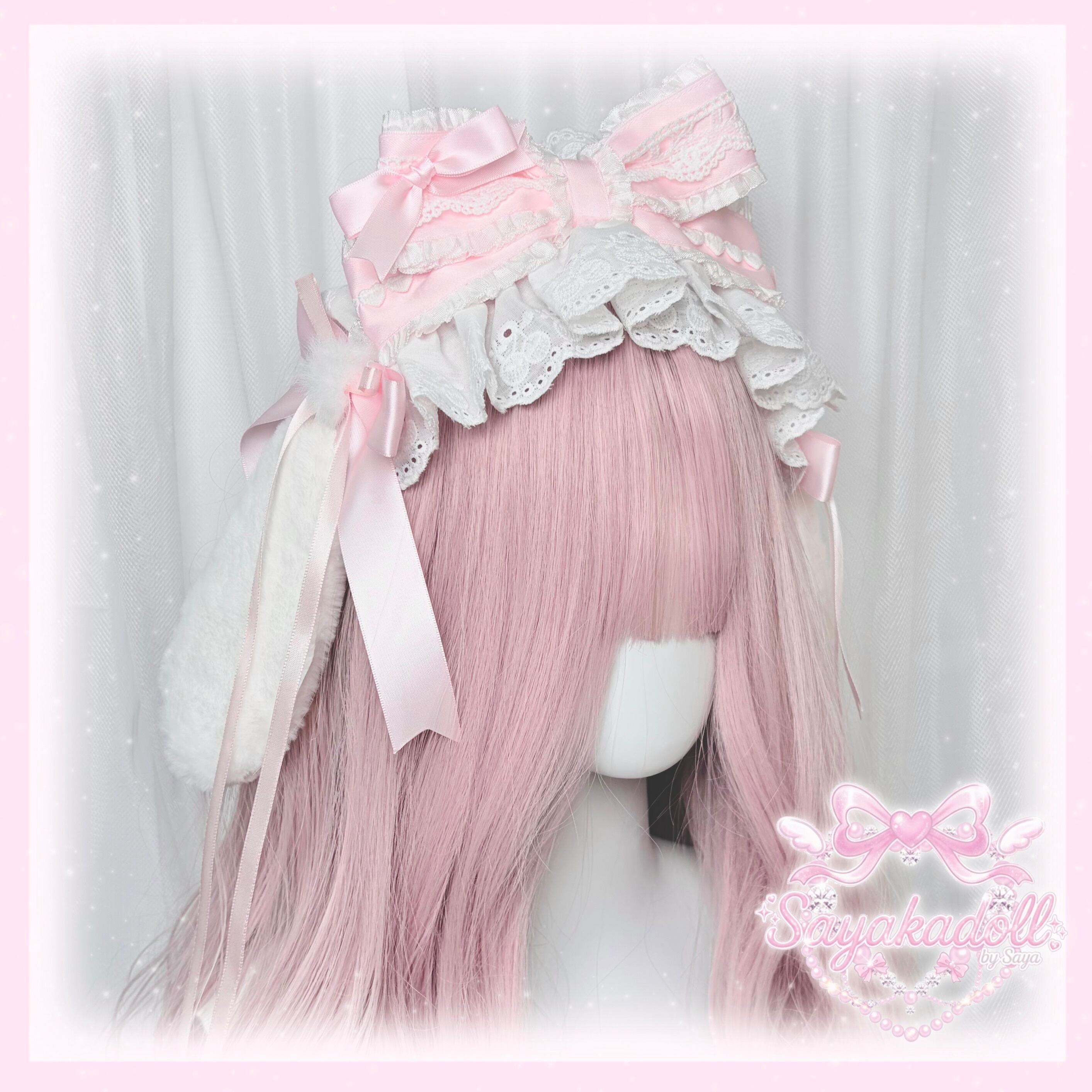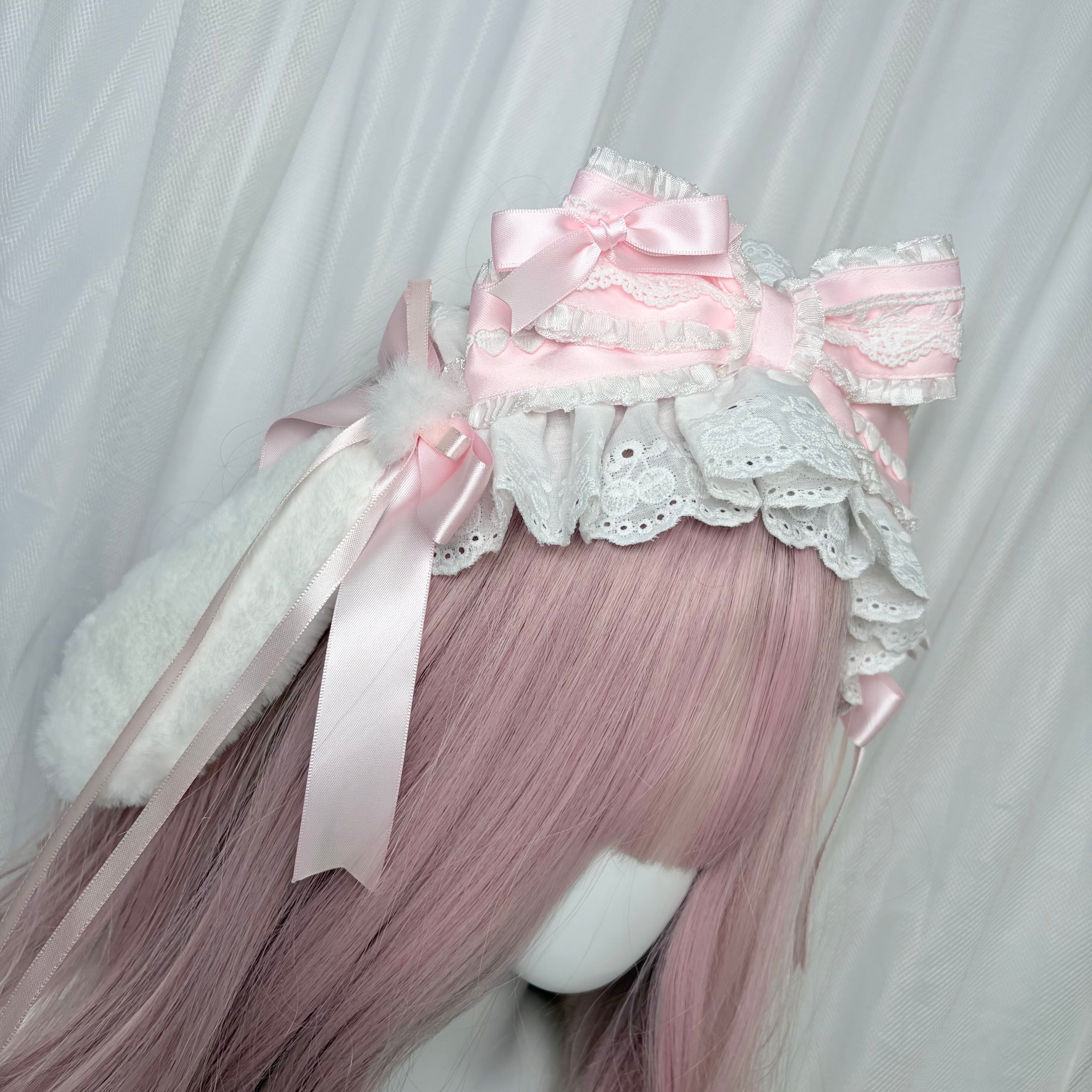 ♡ 【全4色】Milky bunny ぽんぽんリボン うさみみフリルレースヘッドドレス black ♡