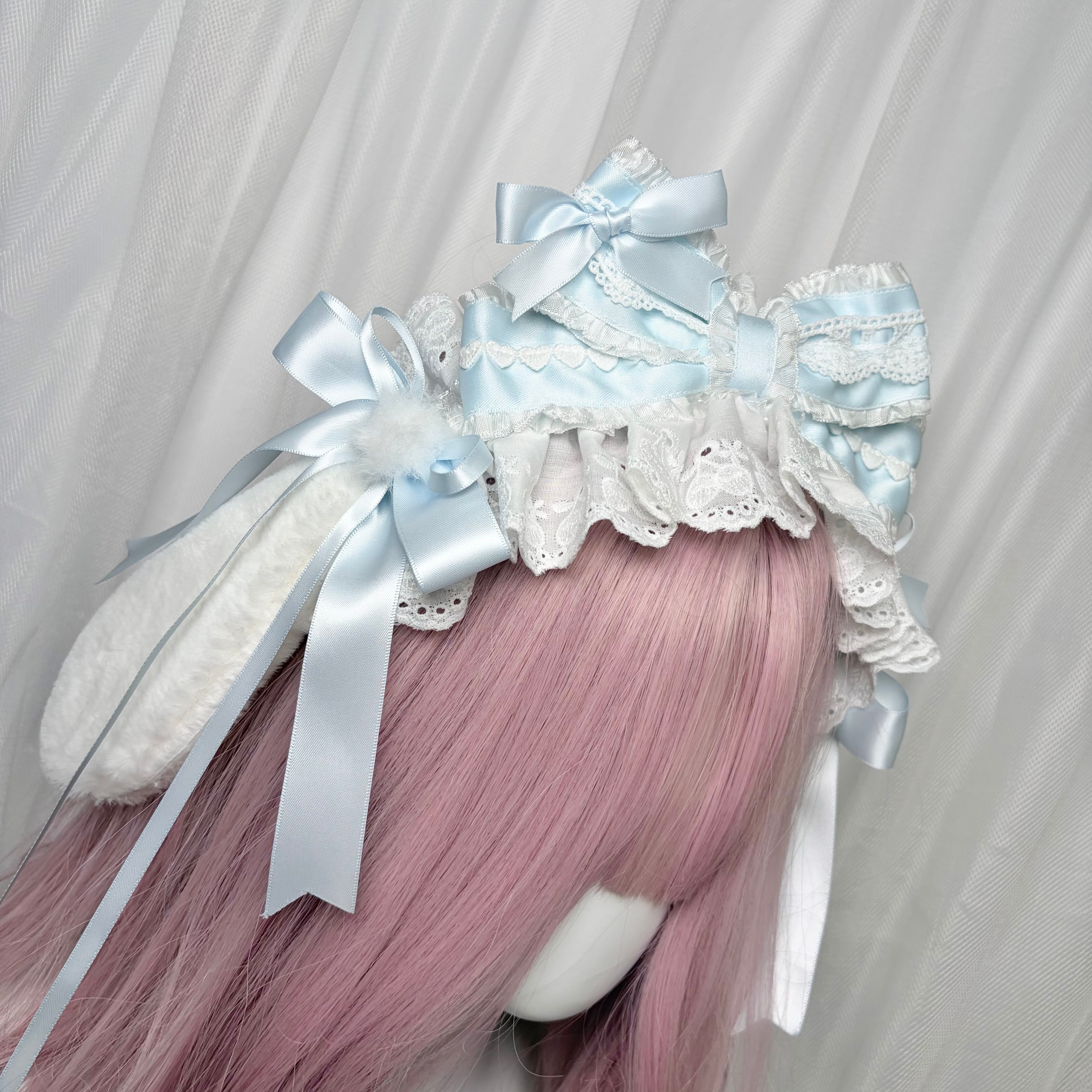 ♡ 【全4色】Milky bunny ぽんぽんリボン うさみみフリルレースヘッドドレス pink ♡