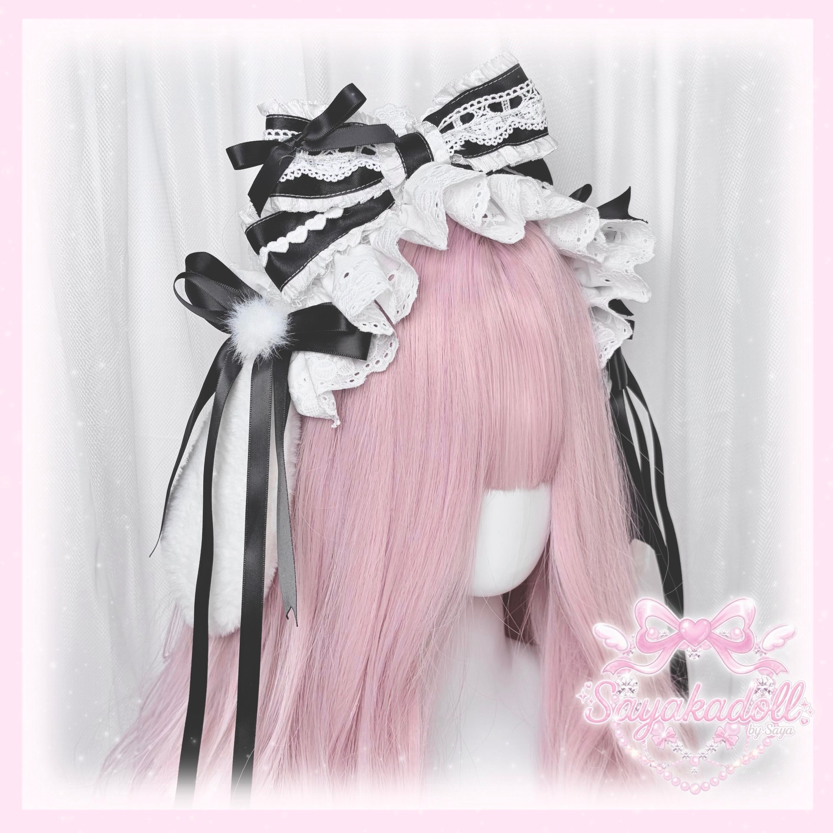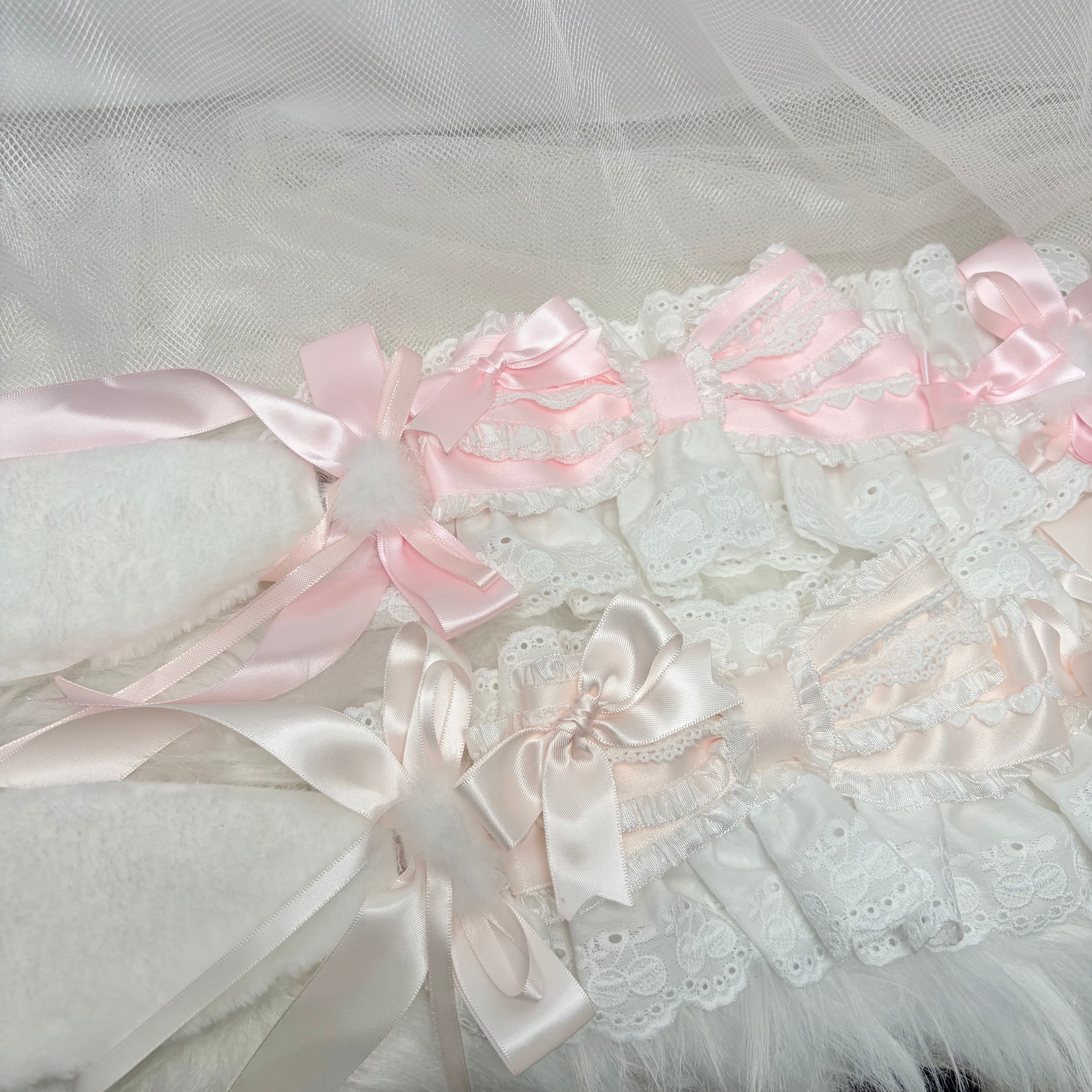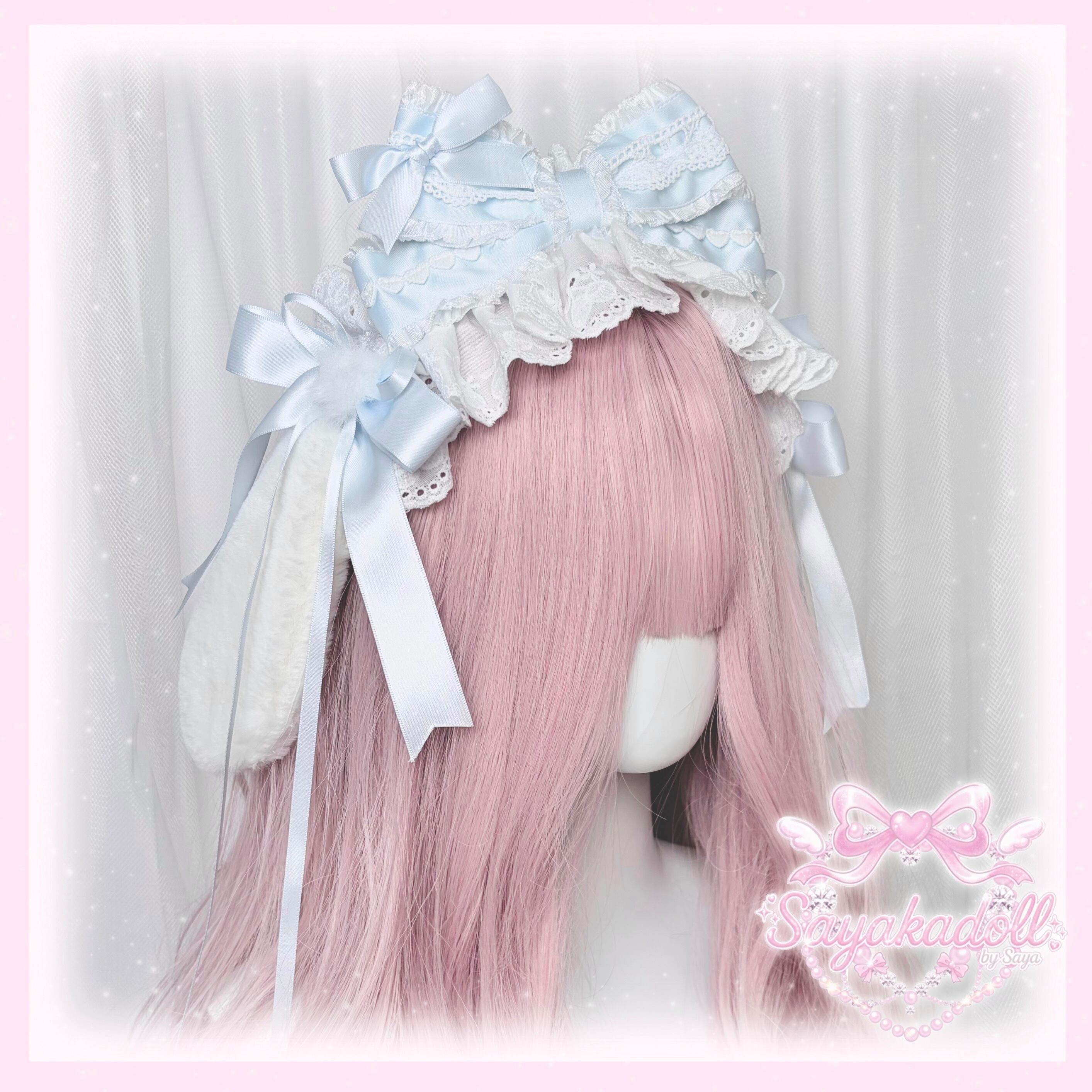 ♡ 【全4色】Milky bunny ぽんぽんリボン うさみみフリルレースヘッドドレス baby pink ♡