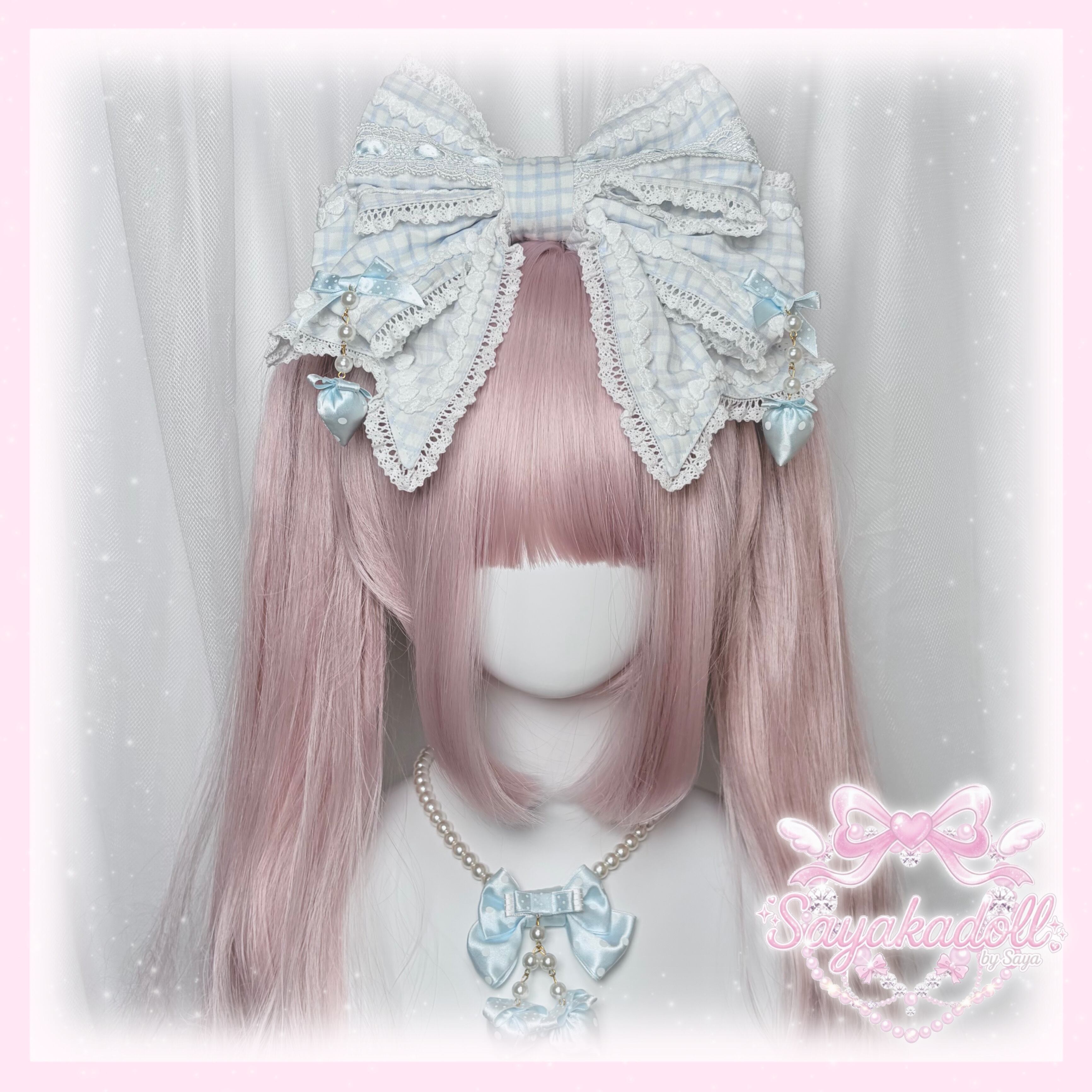 ♡【全3色】MAID Strawberry ギンガムチェック ドット柄リボンフリルカチューシャ red ♡
