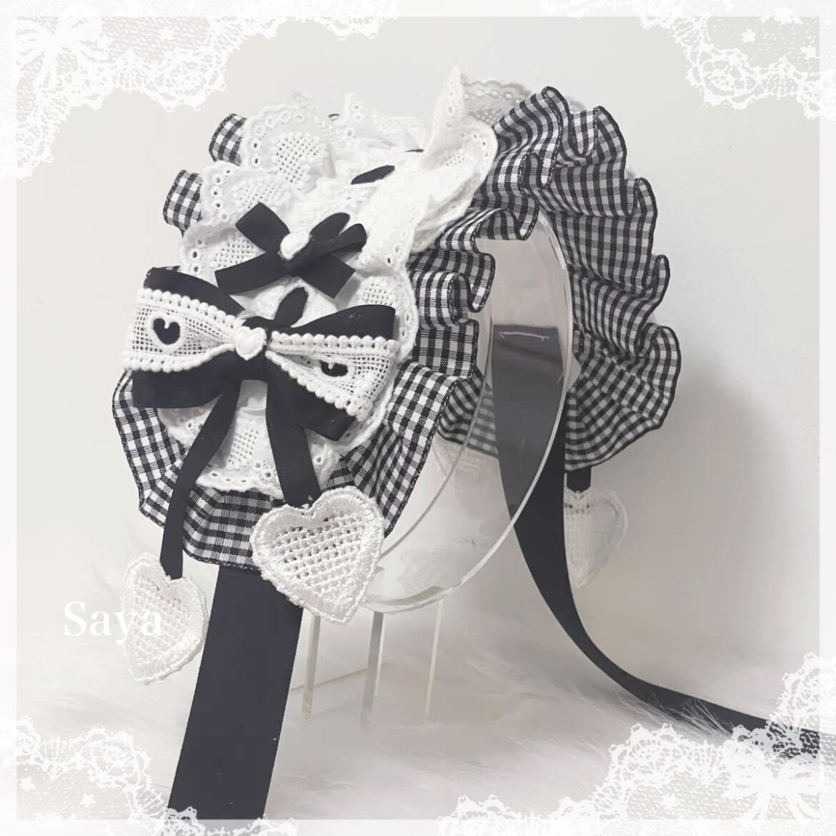 ‪♡ Candy チェック柄フリルレース リボンヘッドドレス black ♡
