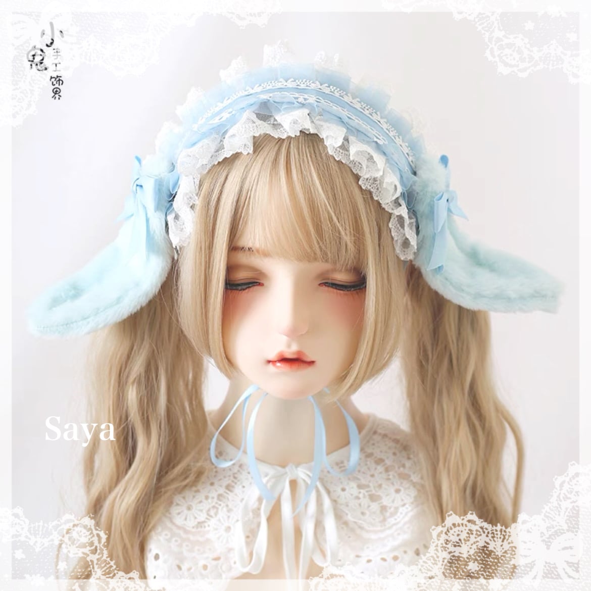 ♡ Lolita うさみみフリルレースリボンヘッドドレス light blue ♡