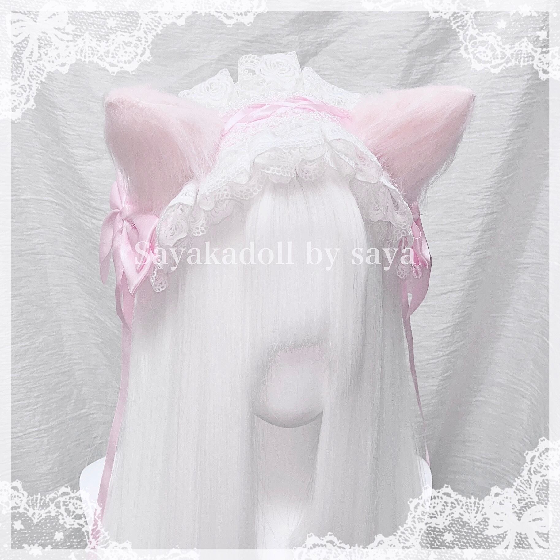 ♡ Fulffy cat ねこみみ フリルリボンヘッドドレス pink ♡