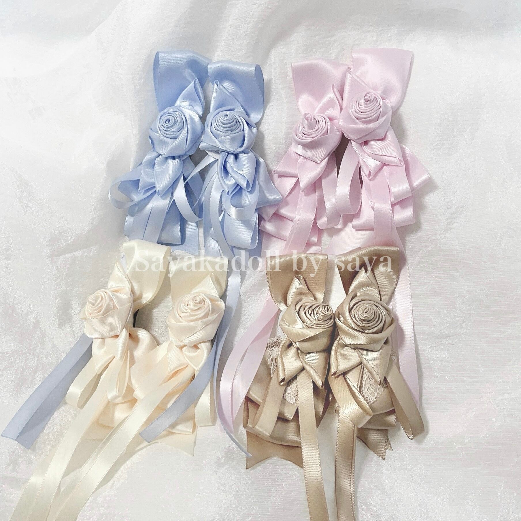 ♡【2個set】Rose サテンリボンヘアクリップ sky blue ♡