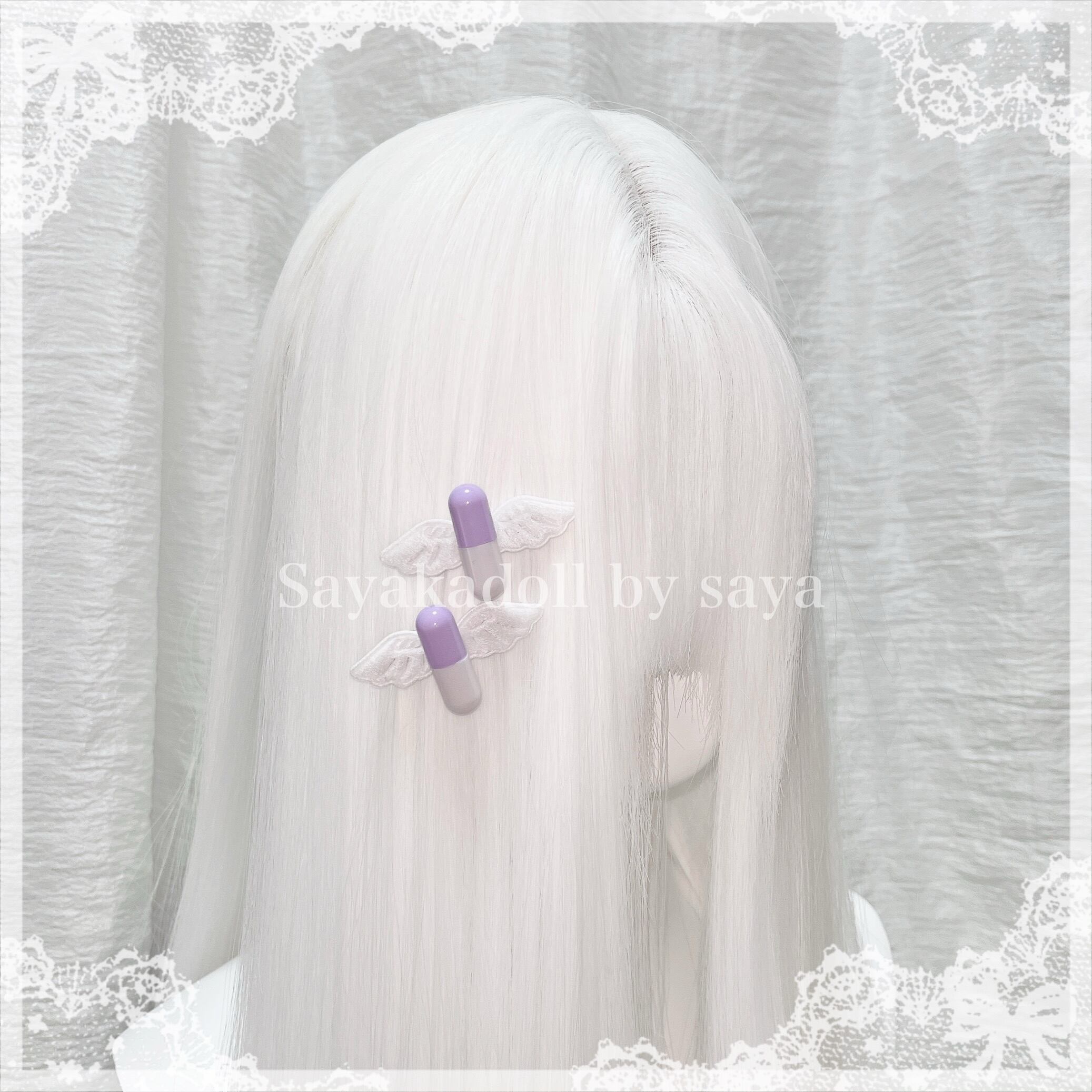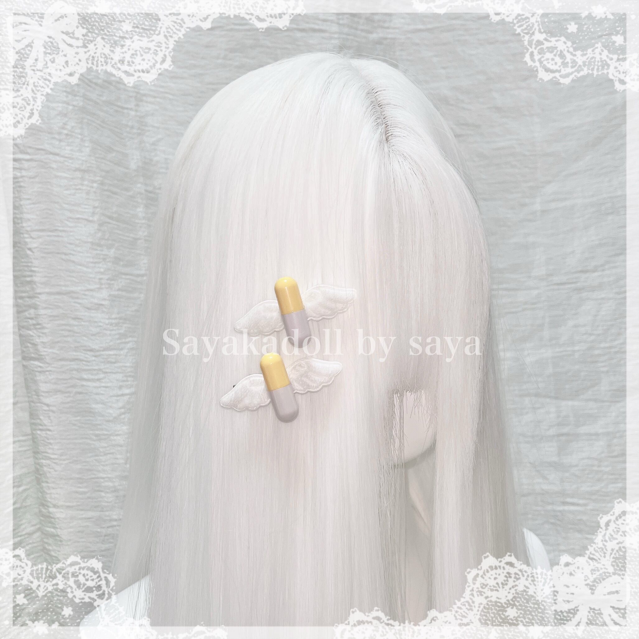 天使の羽付き病みかわおくすりカプセルのヘアクリップ/ヘアピンになります♡