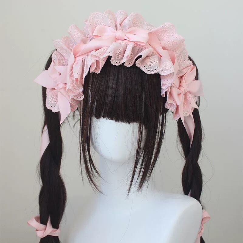 量産型・地雷系やゴシック・ロリータ・サブカル・Y2Kファッションにぴったりなフリルとリボンでボリュームたっぷりのヘッドドレスになります♡